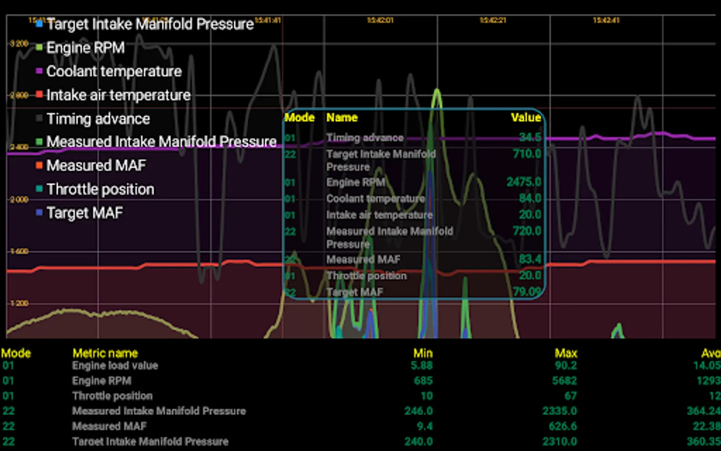 - Up to 5 virtual screens for the Graph view with different PIDs variations