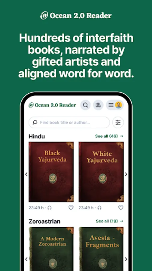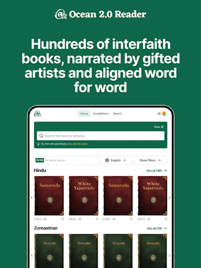 Ocean 2.0 Reader is an interfaith book-lover's tool providing the core literature of many of the world's religions.