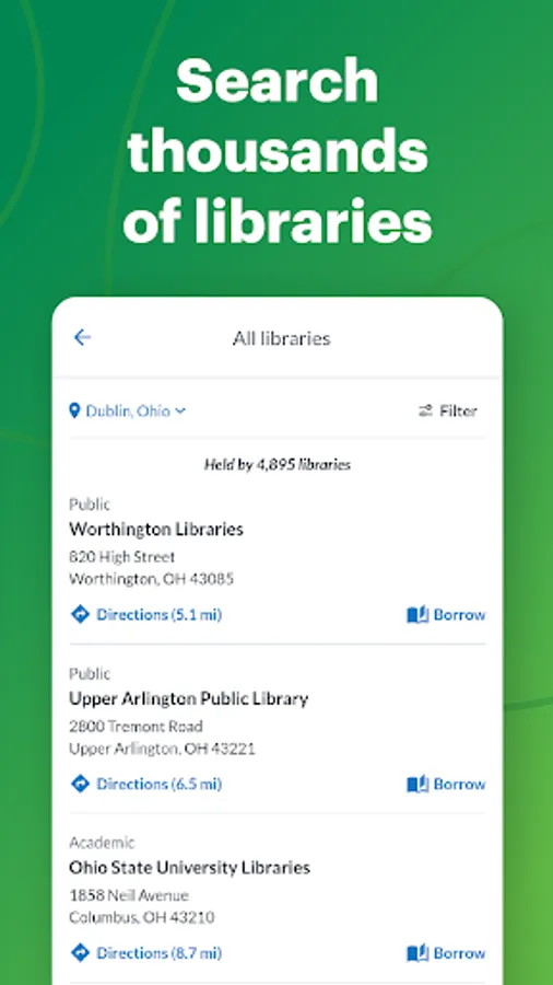 Search billions of resources from 10,000 libraries. WorldCat Find lets you explore what’s available in local libraries and libraries around the world. You can find: