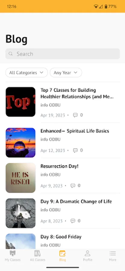 In order to access your classes on the app, you will need to have an active Premium Subscription. If you don’t have that, you can subscribe now, https://odbu.org/subscription-options.