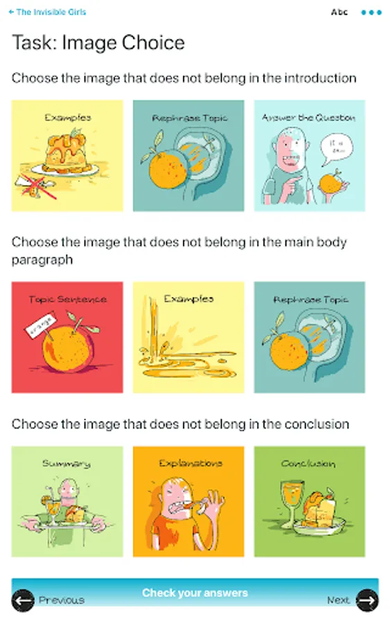 A generic writing structure and comics are used to support learning to write essays in English. This very visual approach to teaching and learning is suitable for students at B2+/C1 level including those with dyslexia or those who struggle with writing tasks.