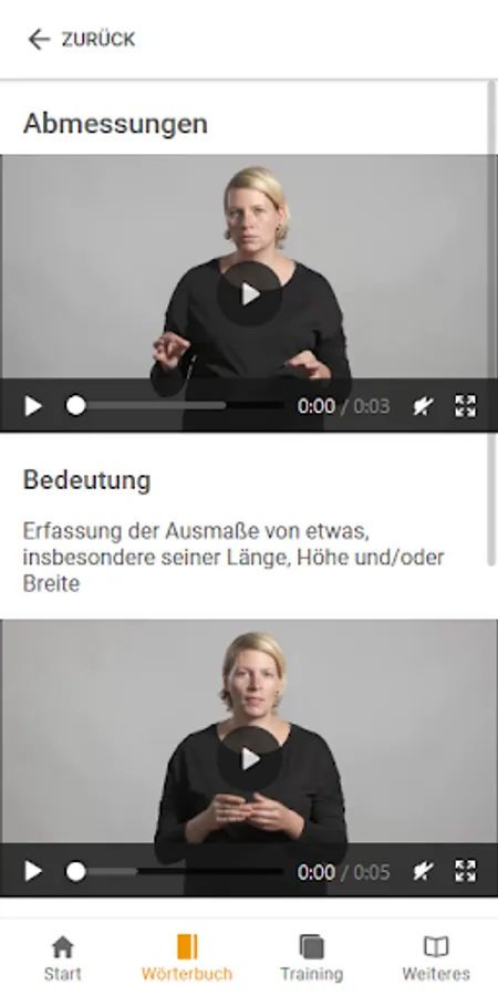 Find and search the word list. Watch videos with the translation of word and meaning into sign language.