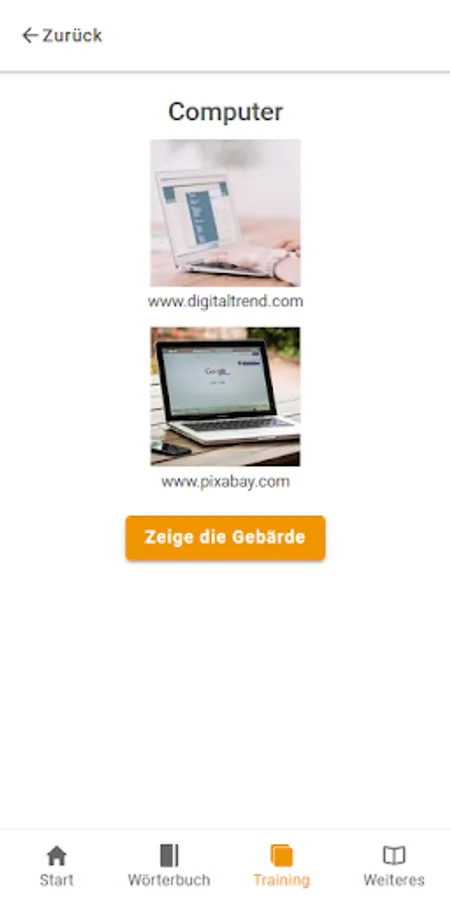 Train words and gestures. Look at them in writing or in sign language and learn the translation.