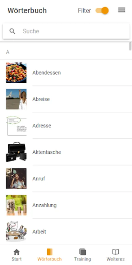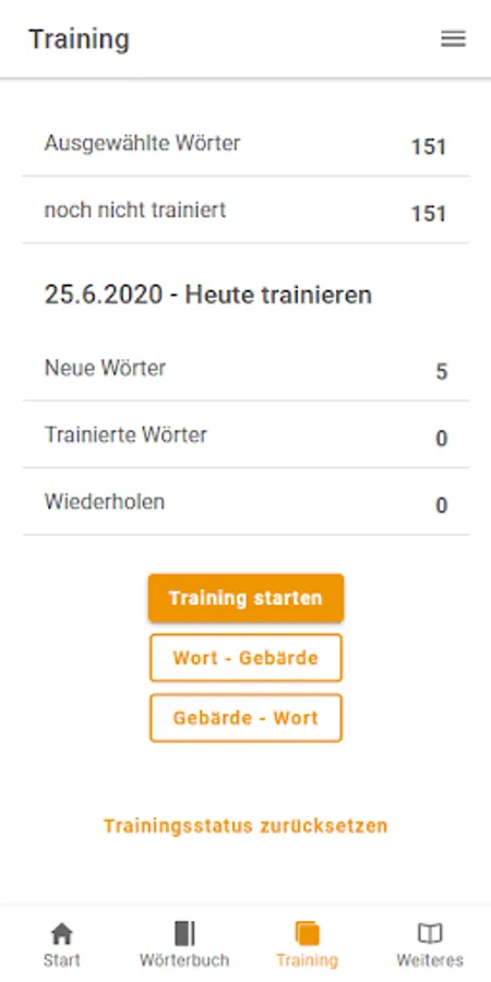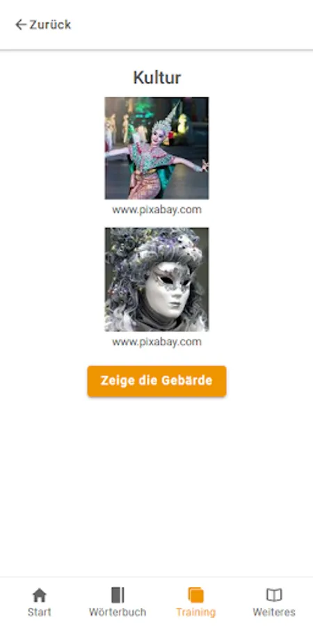 Train words and gestures. Look at them step by step or in sign language and learn the translation.