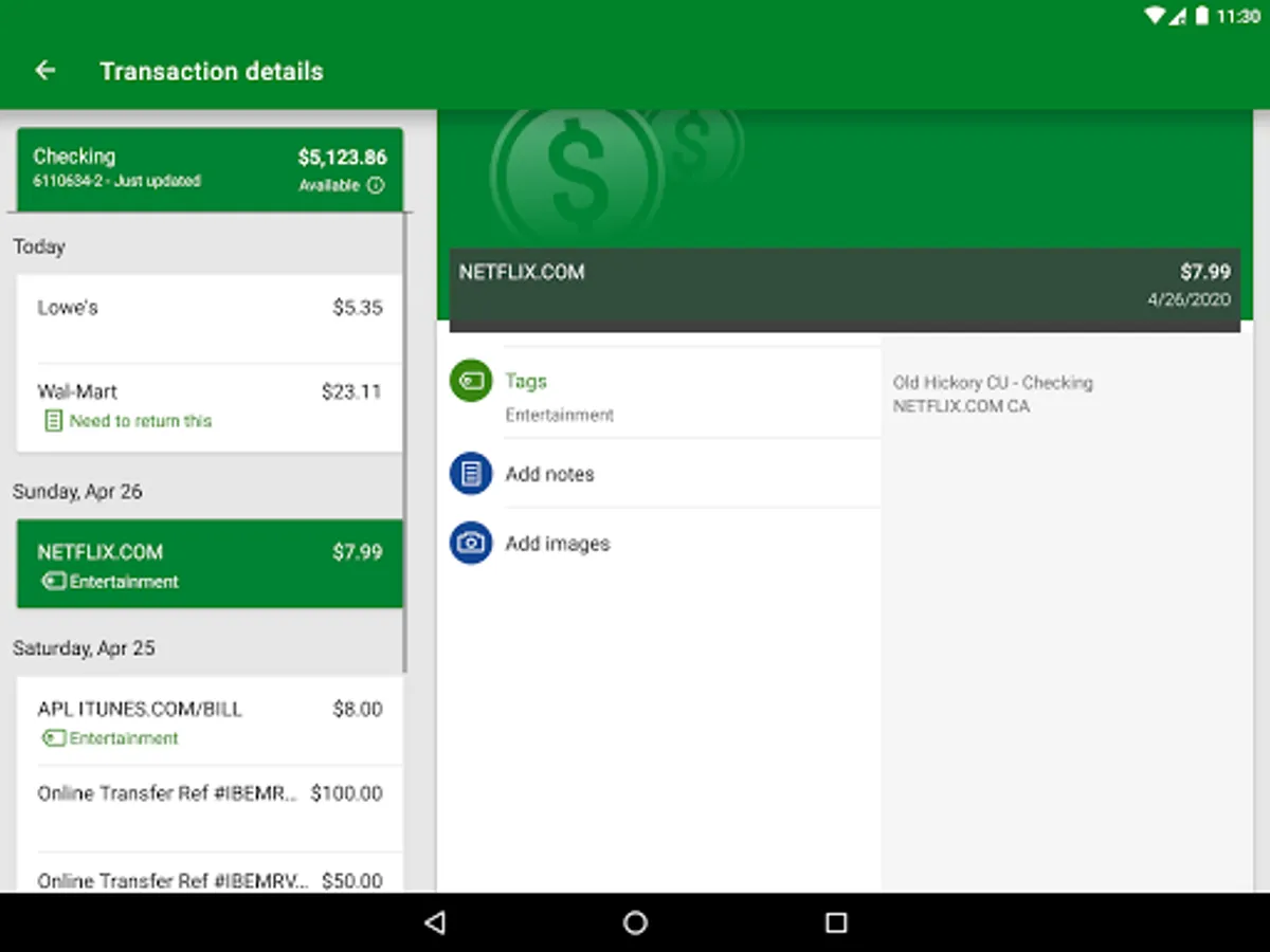 Keep your transactions organized by allowing you to add tags, notes and photos of receipts and checks.