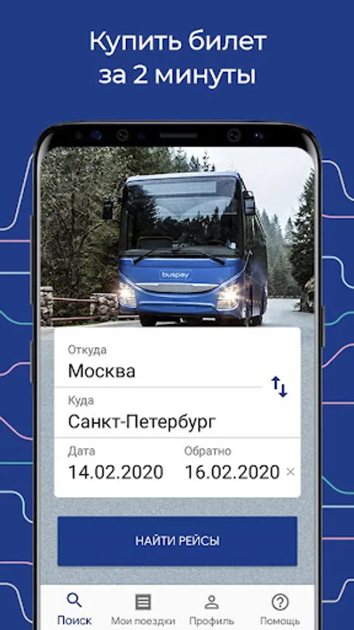 Buying a bus ticket online in 2 minutes is easy! No need to go to the bus station - download the BUSPAY application, see the schedule of intercity buses in Russia, select the date and route and book a ticket online directly from your smartphone.