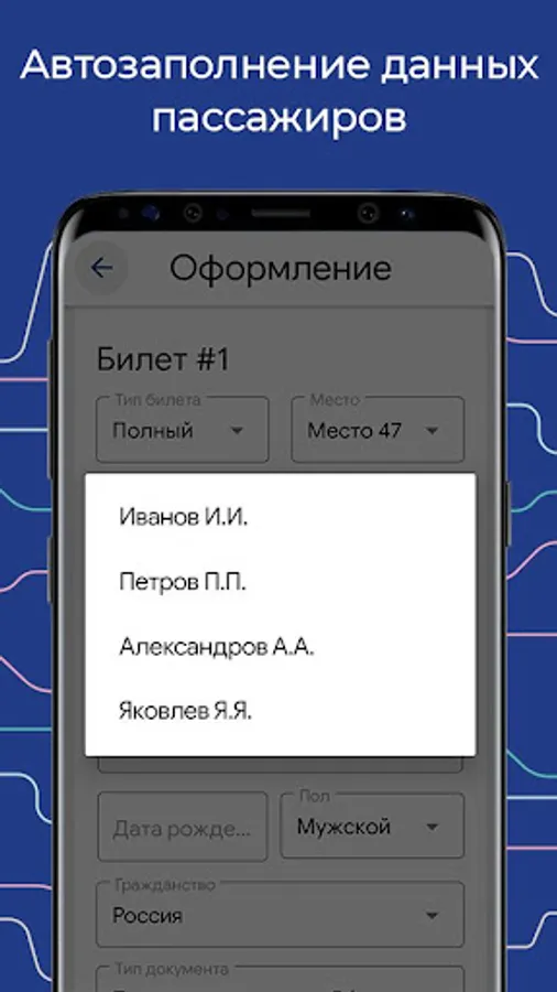 ★ Order tickets for yourself, friends, colleagues, relatives. Even if passengers are in another city, you can buy tickets for them and send them by e-mail.