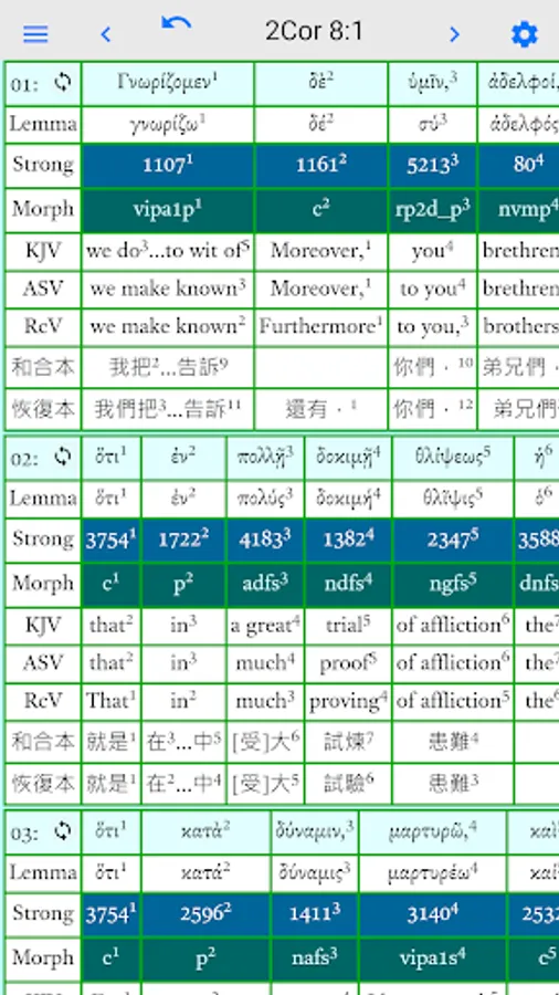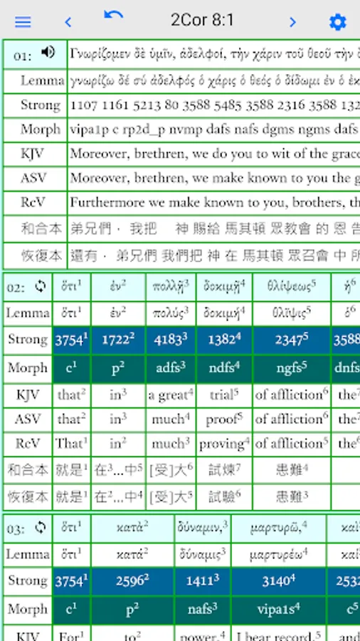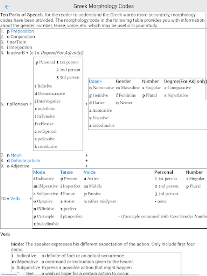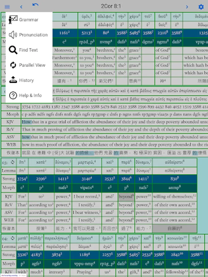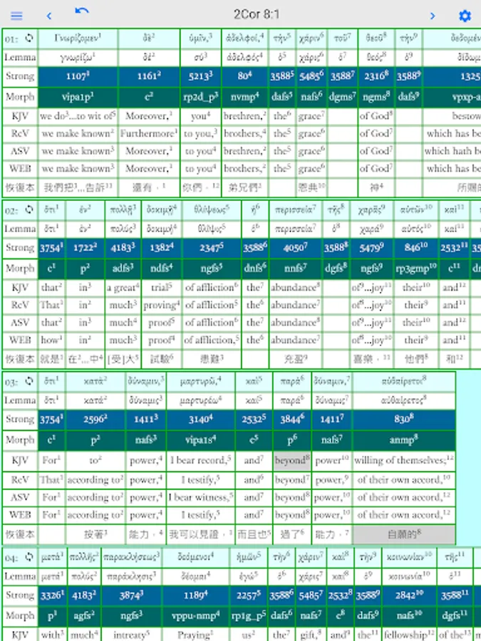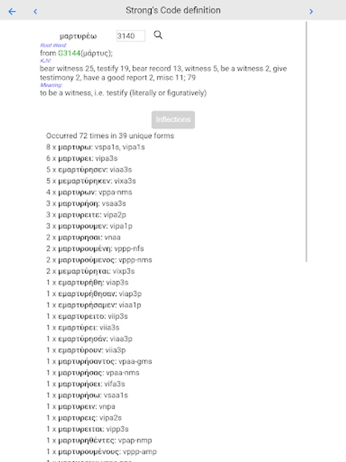 • Displays Greek text with Strong codes and Morphology codes