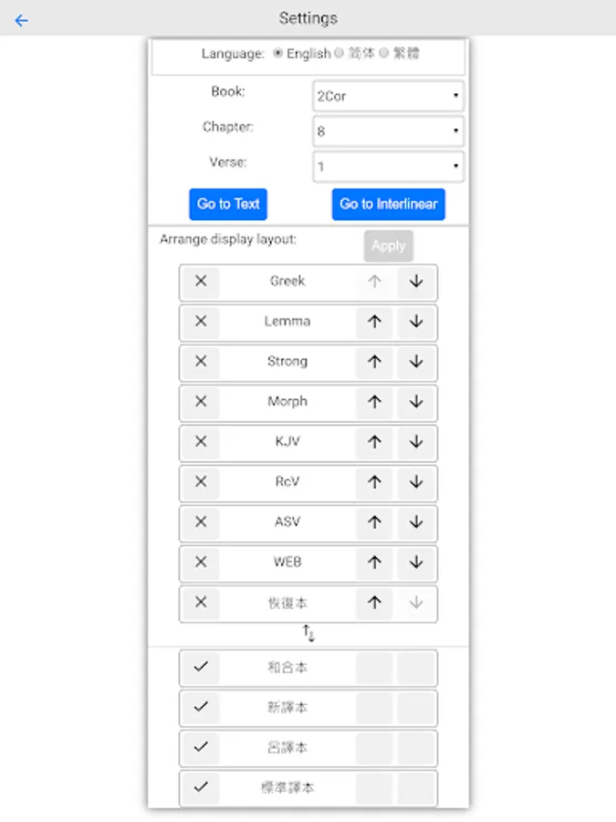 Greek Reversible Interlinear Screenshots