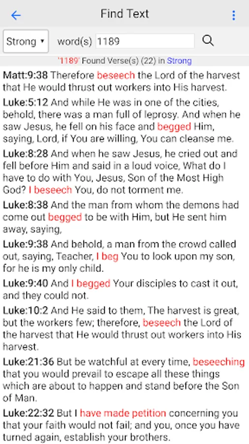 • Contains five English versions of the Bible: KJV, RcV, WEB, ASV, Darby