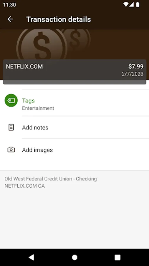 -Keep your transactions organized by allowing you to add tags, notes and photos of receipts and checks.