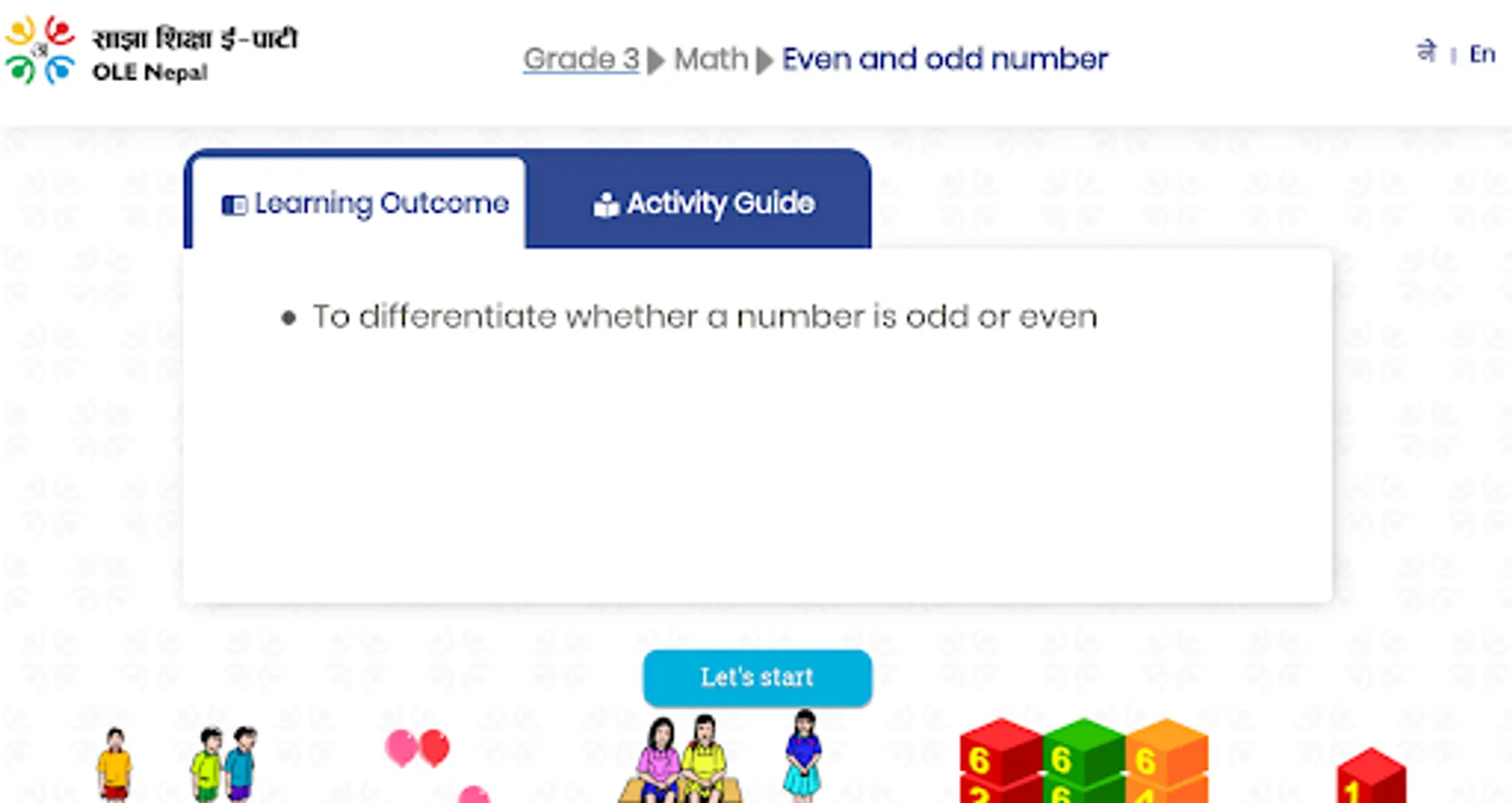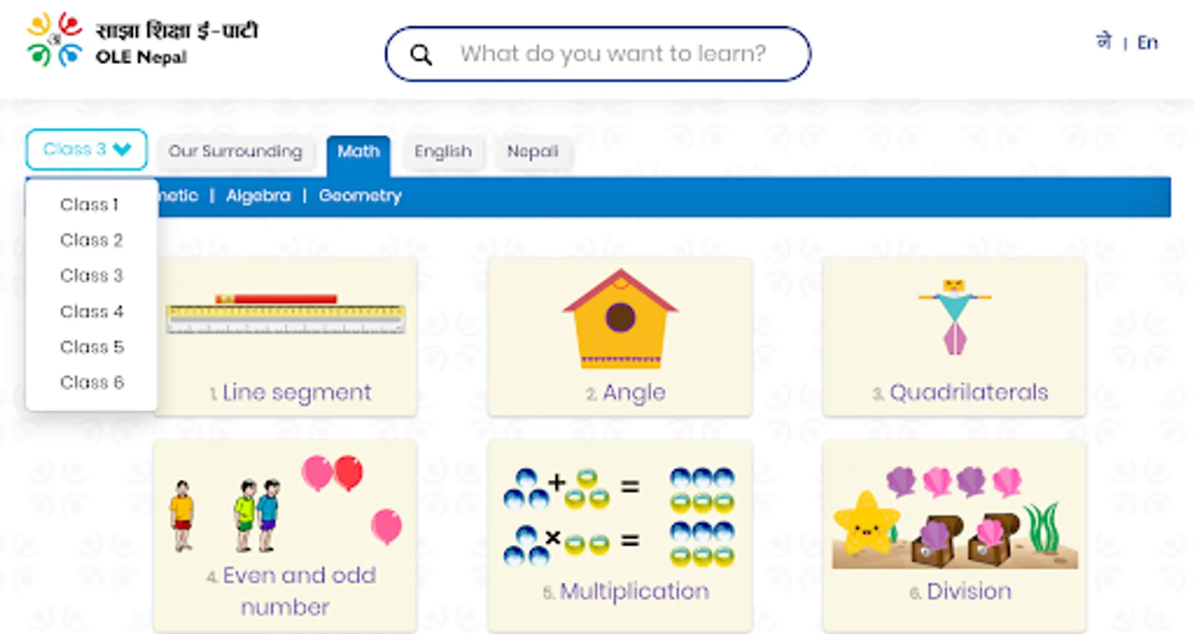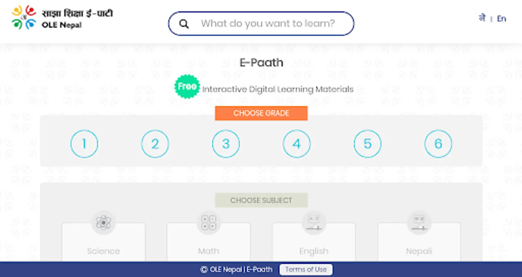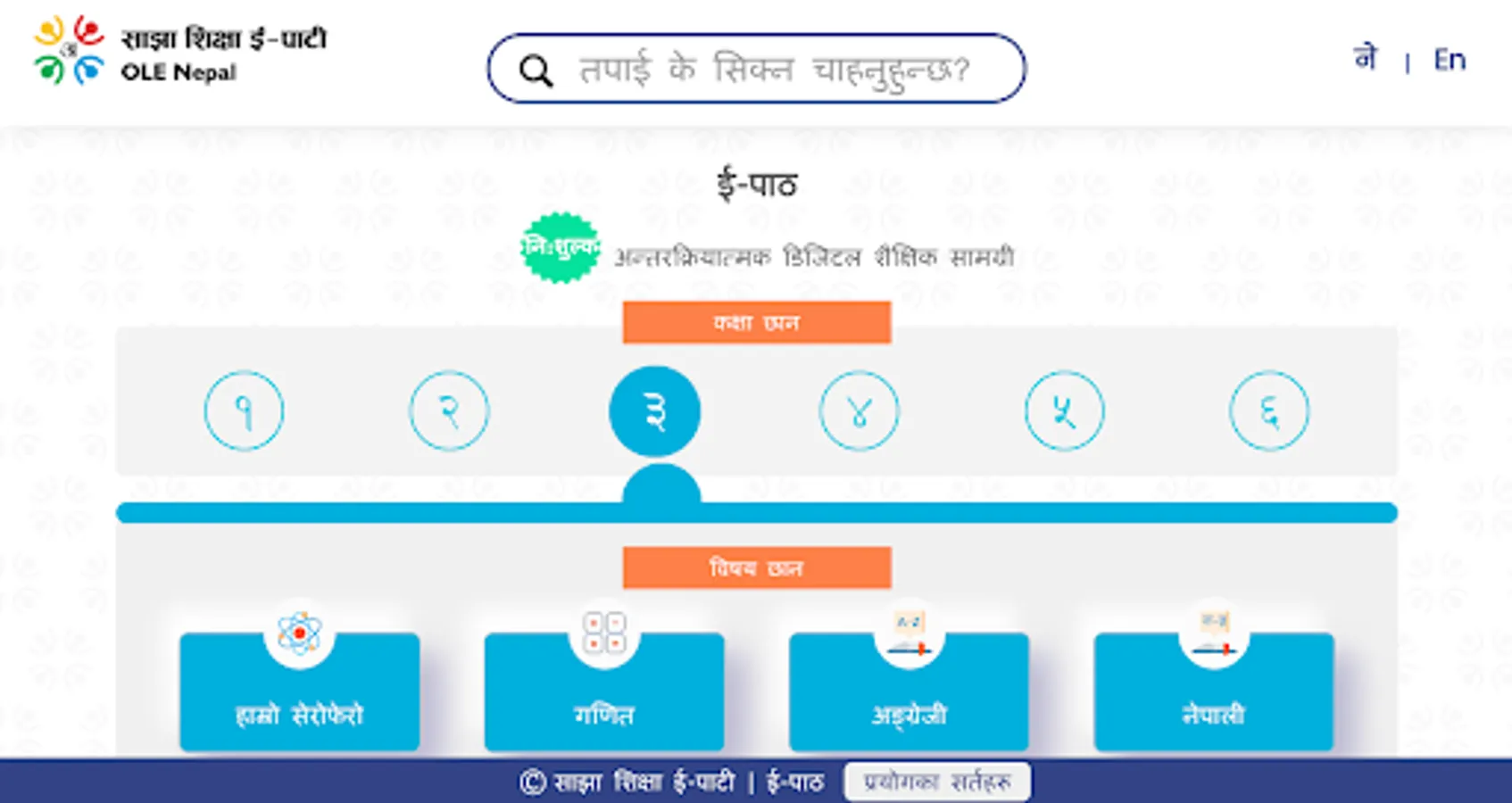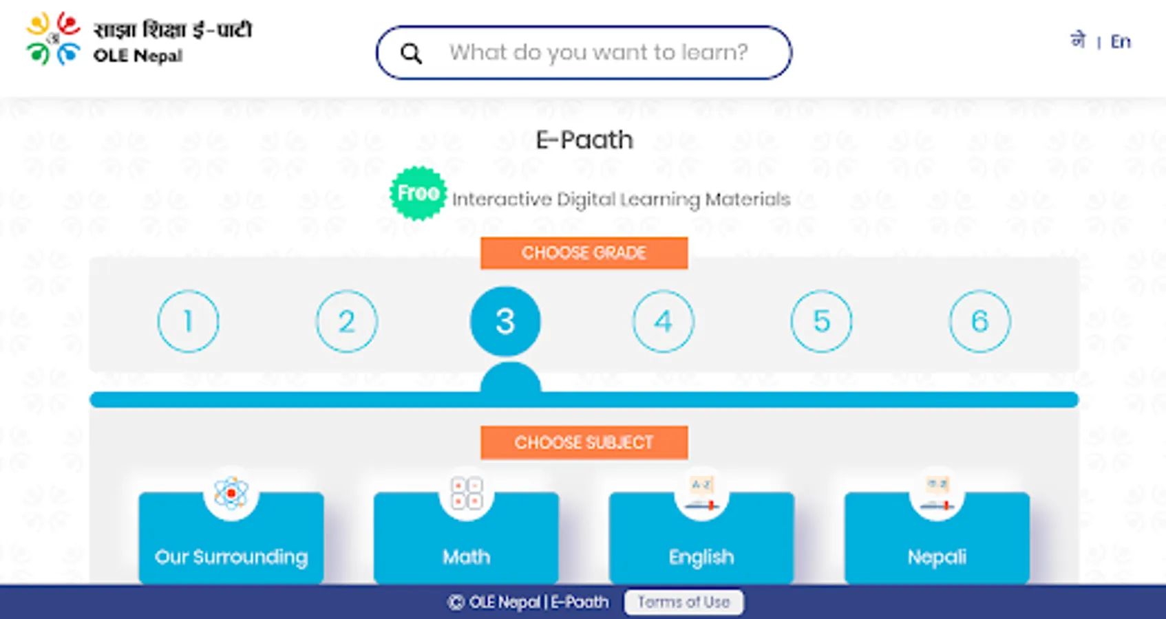 E-Paath is a collection of digital interactive learning activities that are designed and developed at OLE Nepal and distributed freely. The subject and grade specific materials in the E-Paath mobile app are available in Nepali and English languages and cover core subjects in the national curriculum – Nepali, English, science and math from grade 1 to 6.