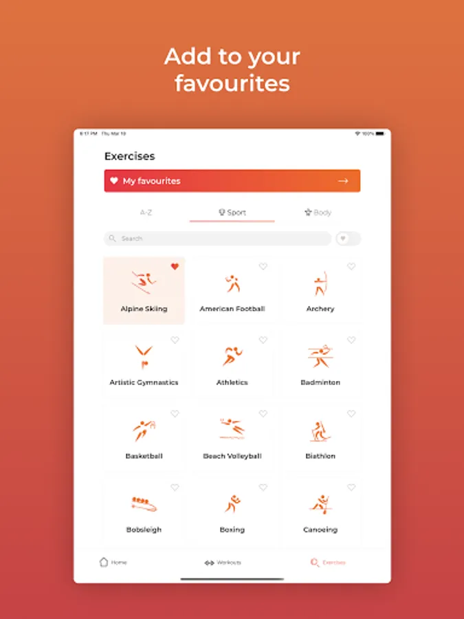 profile of the sport. Likewise, under “Body”, you will find exercises developed to prevent