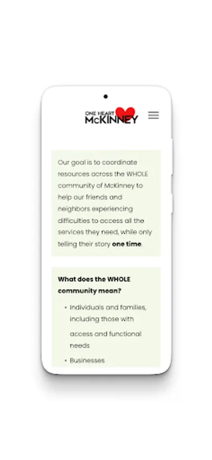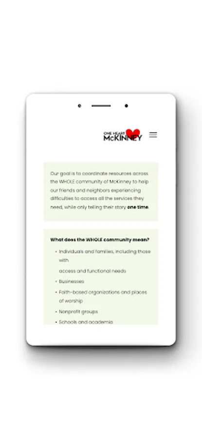One Heart McKinney exists to coordinate the WHOLE community to maximize well-being in daily life, and respond to and recover from any community crisis.