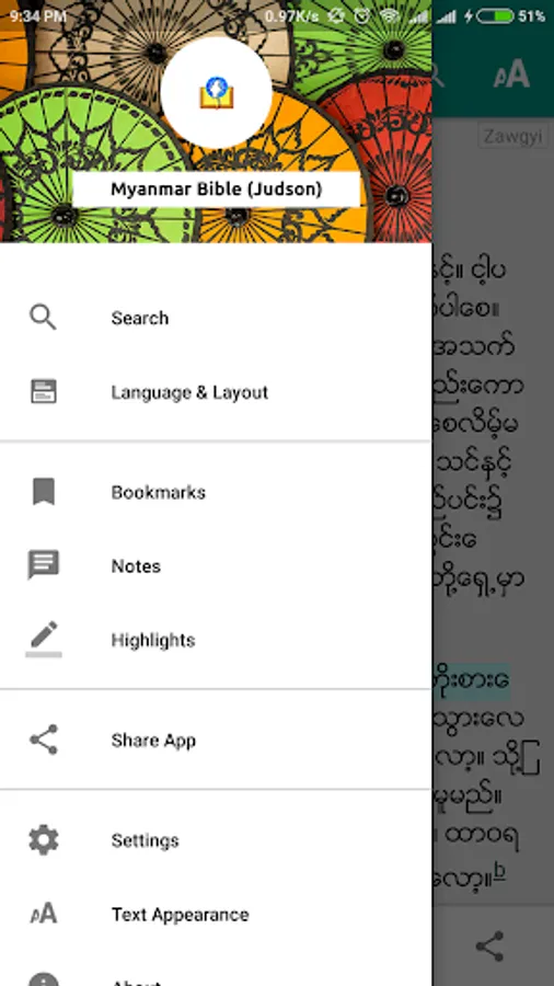 The app and its content are copyrighted by The Bible Society of Myanmar.