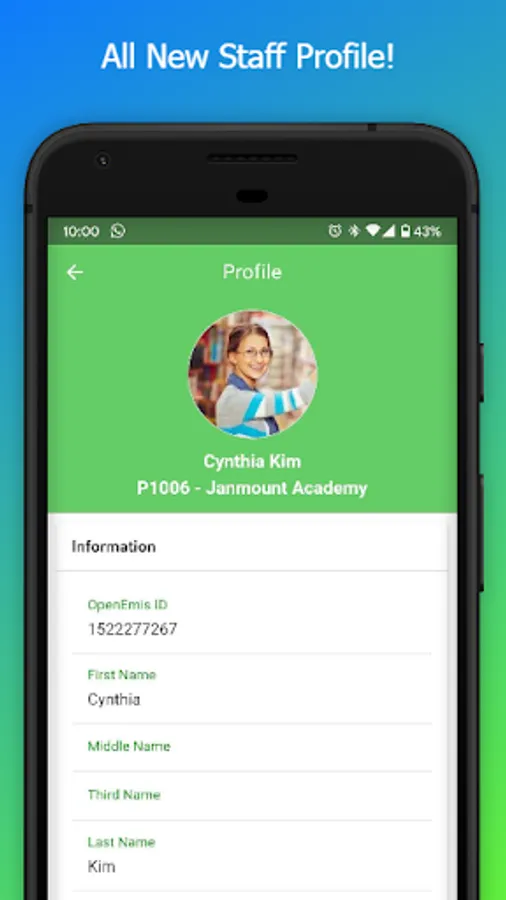 The OpenEMIS Staffroom application is a tool to manage staffs data. They are able to update user profile such as address, date of birth, profile picture and other informations.