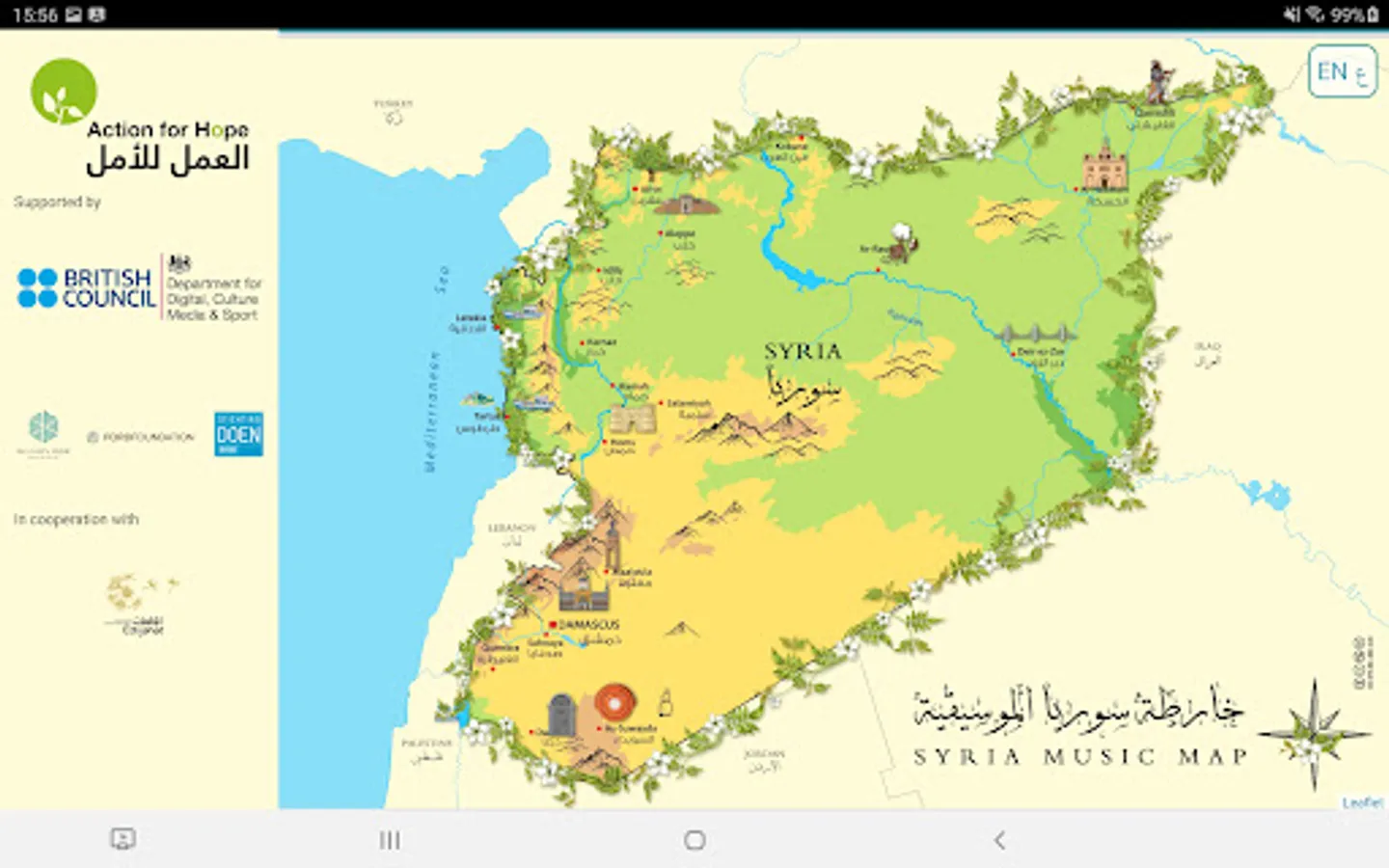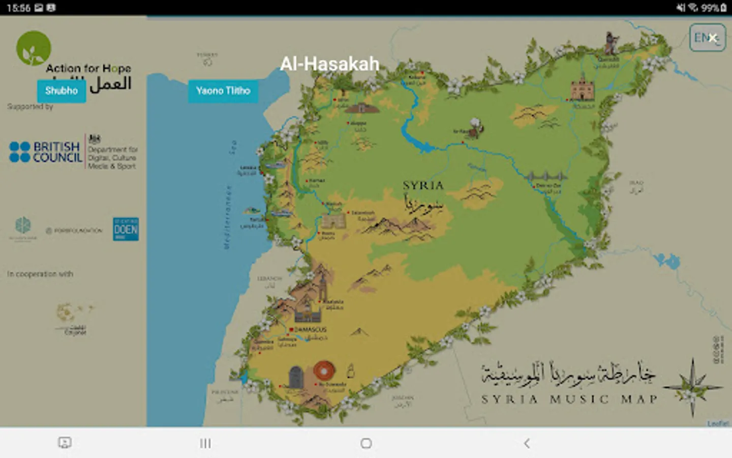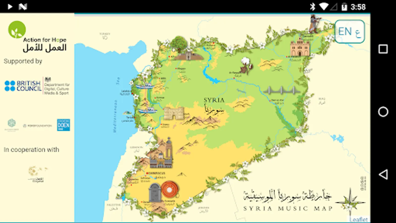 Music is said to be a universal language, and sometimes that it has no homeland, but we believe that music carries the feelings, history and dreams of those who perform it and those who listen to it, which makes it a very local language. Music is also broader than political and geographical boundaries because it travels with humans, and with the technical tools they invent, thus becoming a human expression that encompasses and transcends national identities and political boundaries. For nearly a decade, Syrians have been subjected to the biggest forced displacement of modern times, with nearly 9 million people leaving Syria. Wherever Syrians settle, they take with them part of their music, and leave behind other parts of it. We hope that the Syria music map will be a source of enjoyment and reassurance for millions of Syrians outside and inside Syria, and a resource for all Syrian and oriental music lovers more generally.