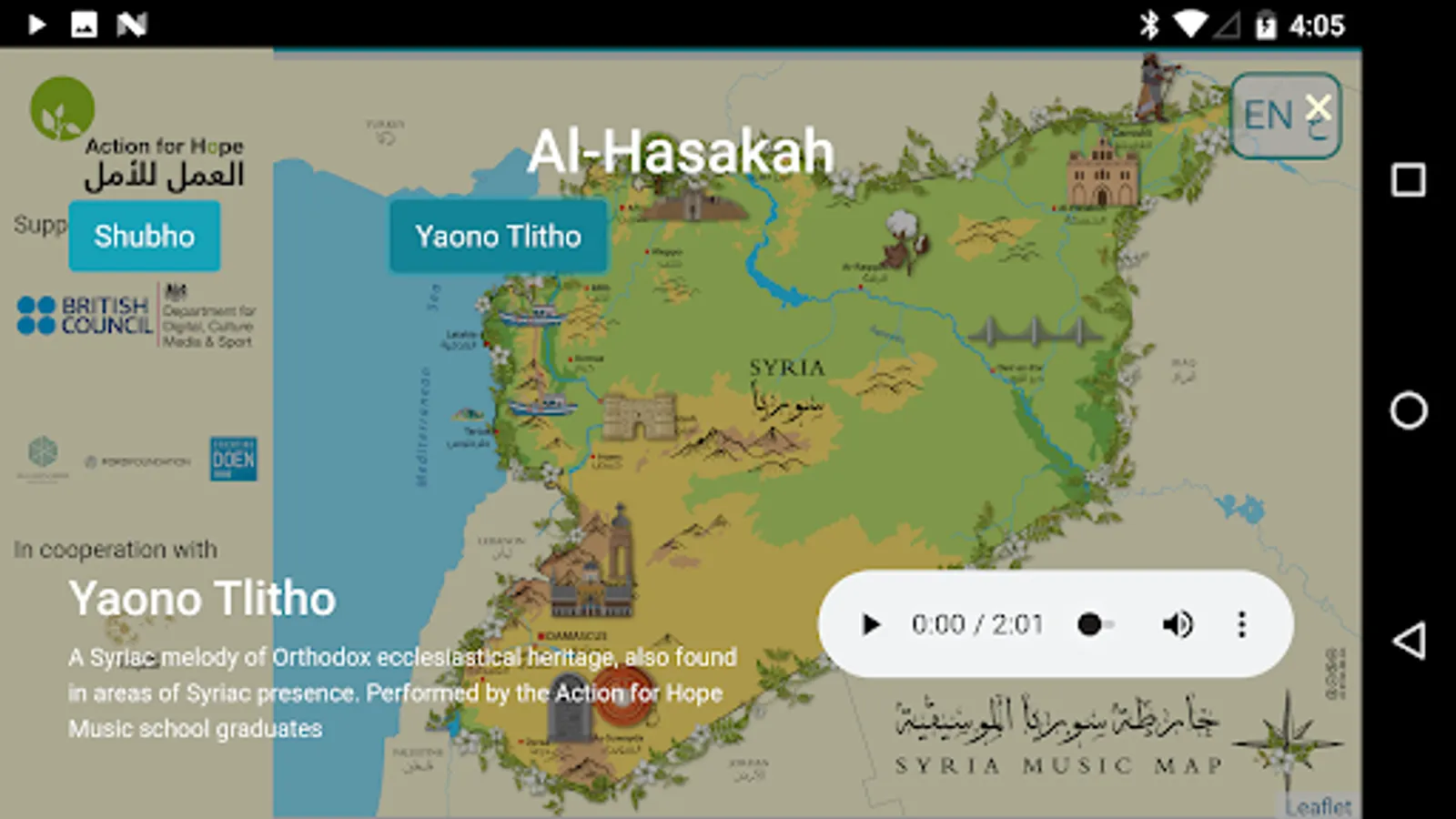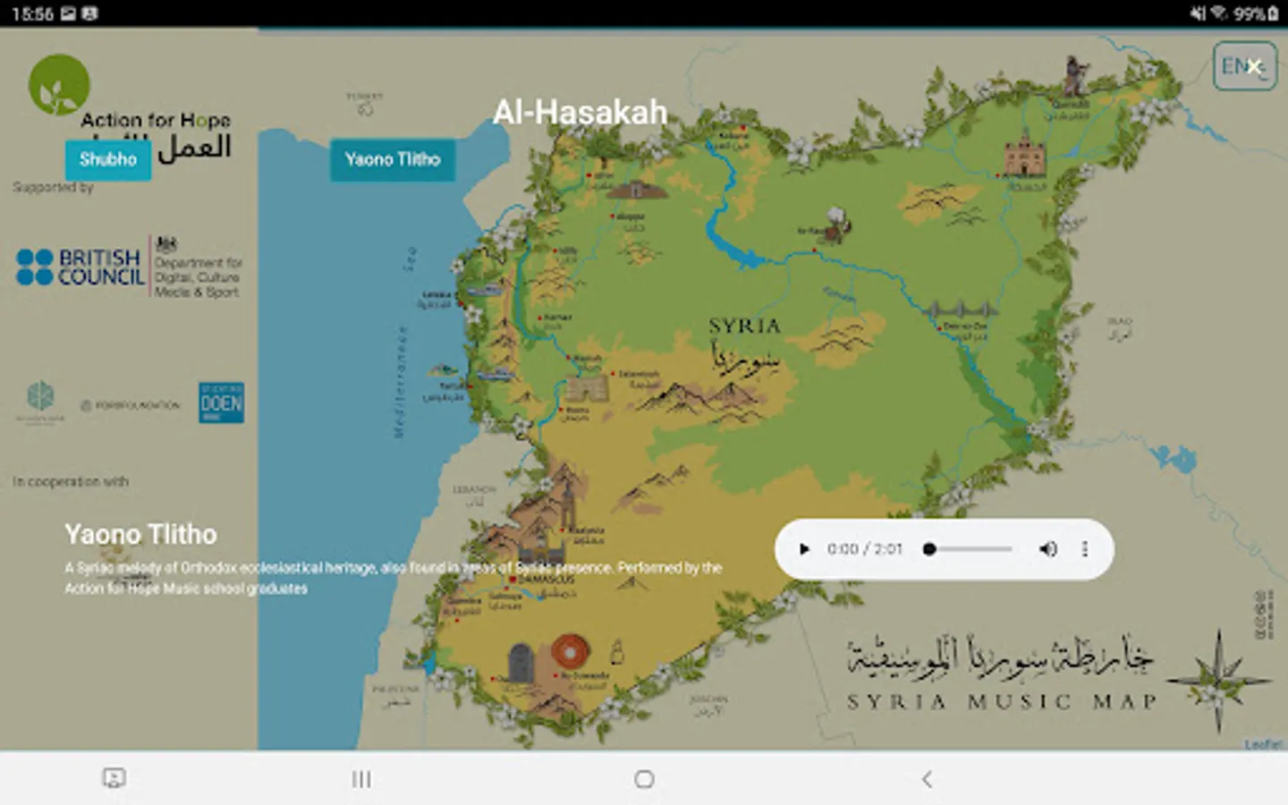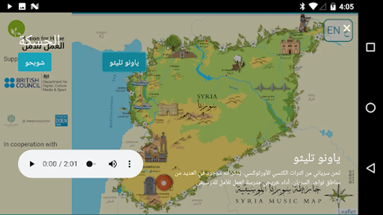 We have been thinking about this project since 2018, but we did not begin the actual work on it until the summer of 2020, during the crisis of the COVID-19 pandemic, when we had to slow down normal work and then took the decision to start the map with 100 songs and music pieces as a first stage. What we put before you today is the beginning of an effort that we hope you can contribute to. If you have recordings of Syrian songs or music pieces that you would like to add to the map, please contact us at: info@act4hope.org