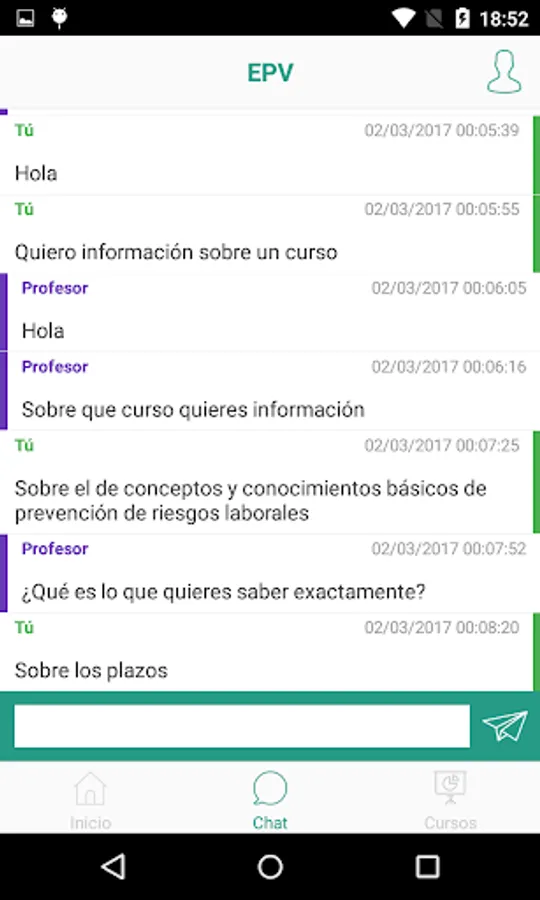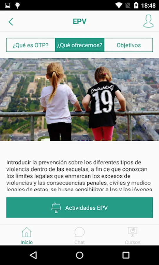 4. Accessing a Chat instant answers, where professionals, children and families may consult an expert in Social Criminology.