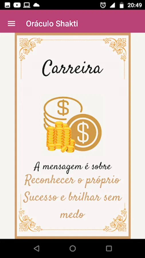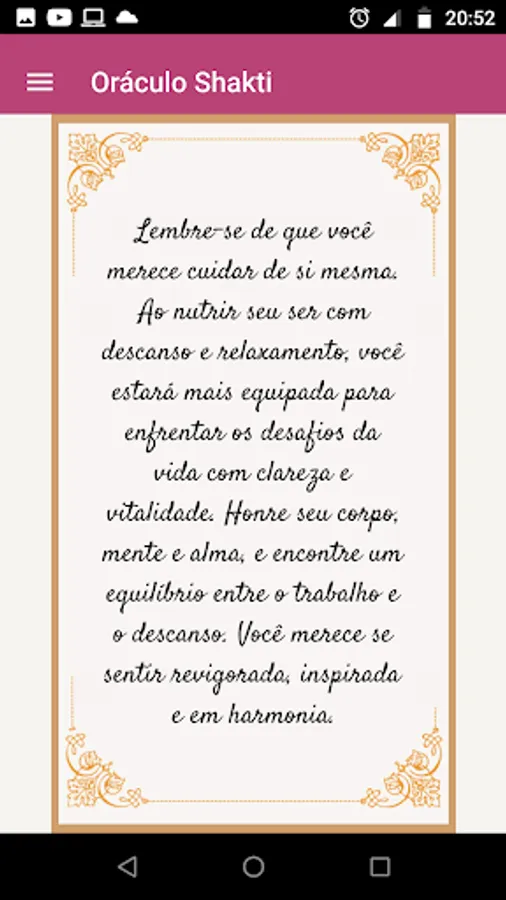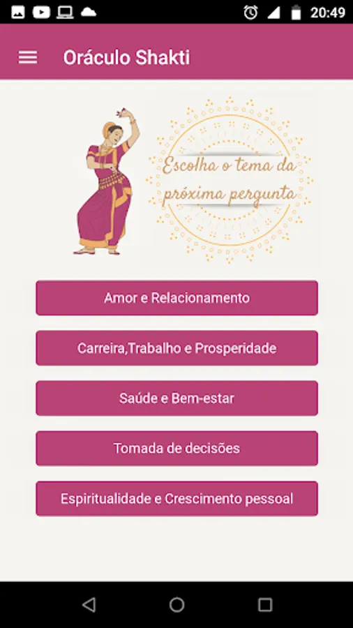 This app aims to help women reconnect with their own essence through reflections and self-knowledge through the archetype tool of the Indian goddess Shakti, based on Jungian psychology, with phrases that have a positive impact on the female psyche.