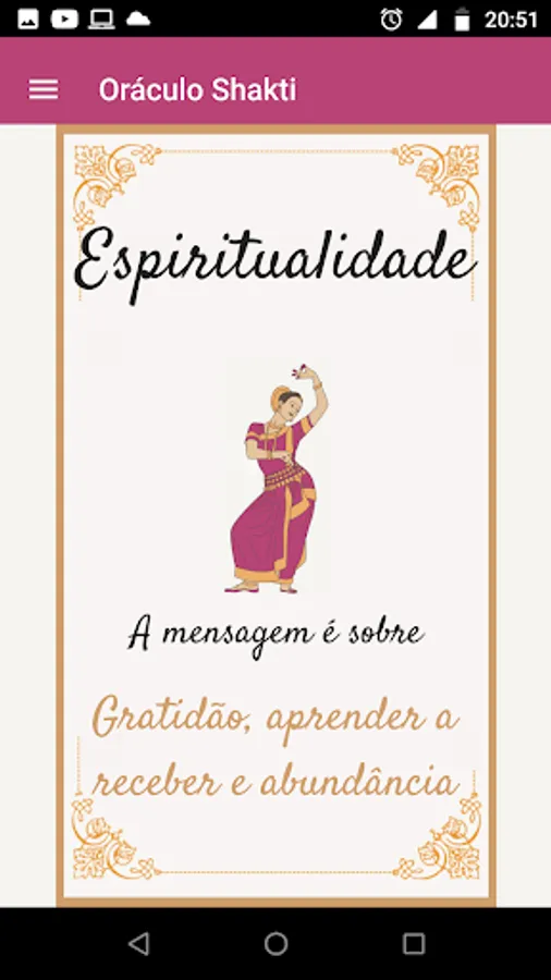 The Shakti Oracle is an application that allows you to draw cards and reveal what the Goddess Shakti has a message for you!