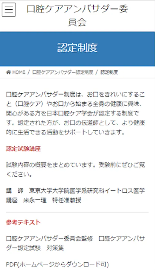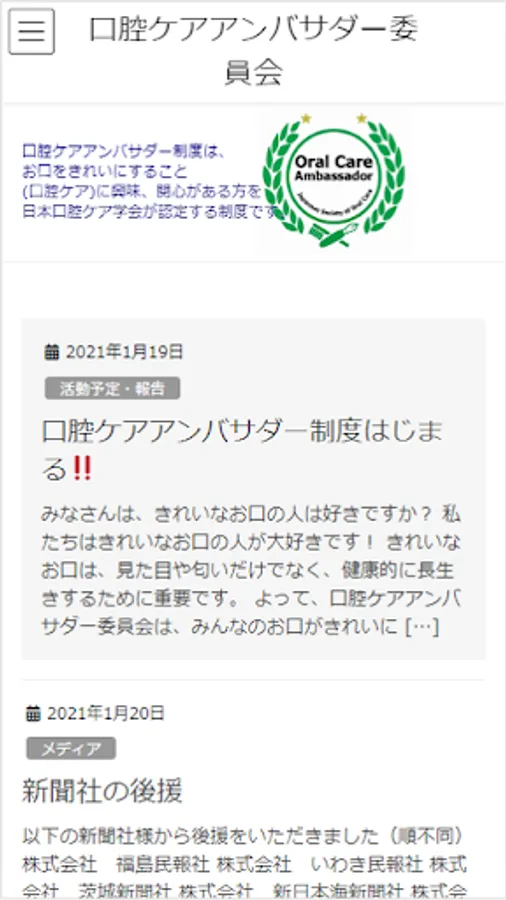 The oral care ambassador system is to clean the mouth (oral care), prevent oral health from the mouth (for example, "gargle", "wash hands", and "oral care" to prevent influenza, and prevent aging by chewing firmly 30 times. This is a system in which the Japan Oral Care Society certifies those who are interested in the latest information on (effect).