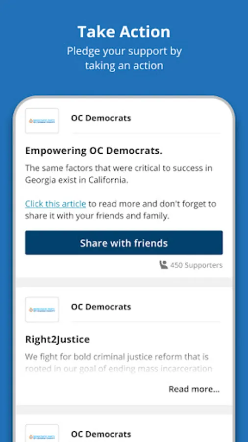 Your one-stop application for Democratic activism in Orange County, CA! We provide you everything from your endorsed slate of Democratic candidates (from the top to the bottom of the ballot) as well as local Democratic events, ways to connect with your Democratic neighbors, and more.