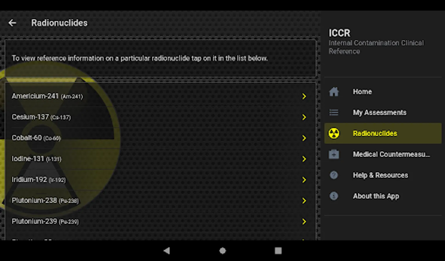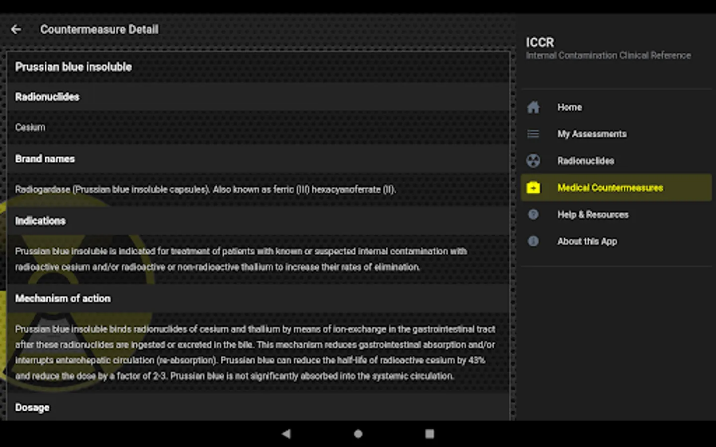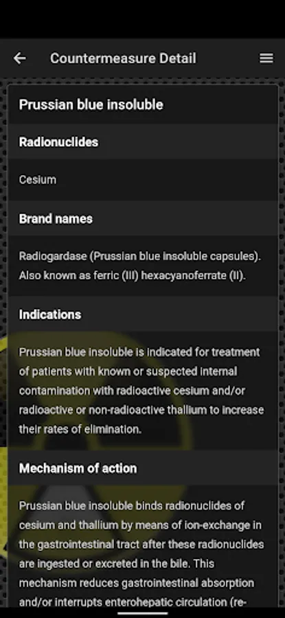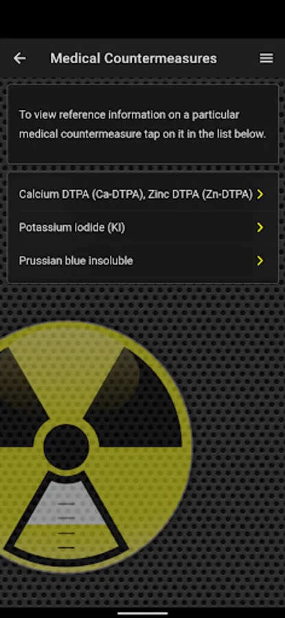 - Reference information on a particular radionuclide or a medical countermeasure