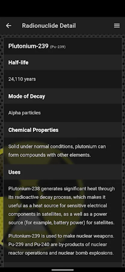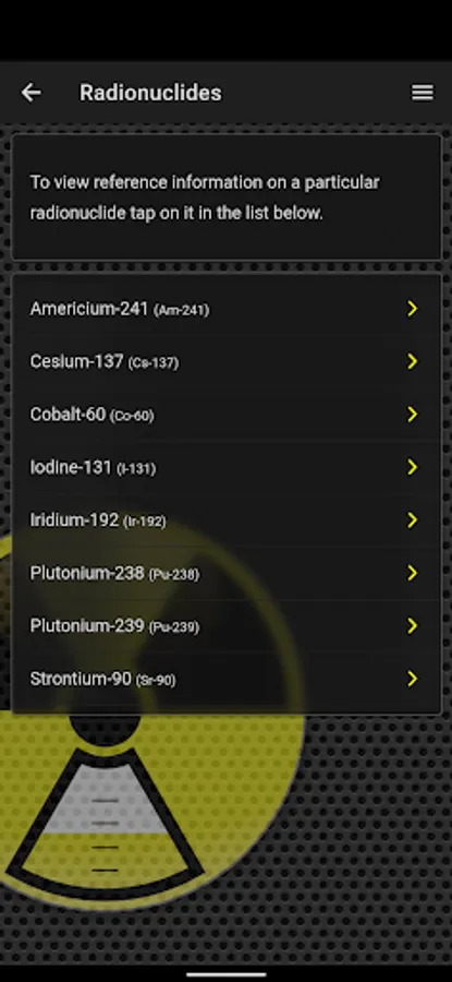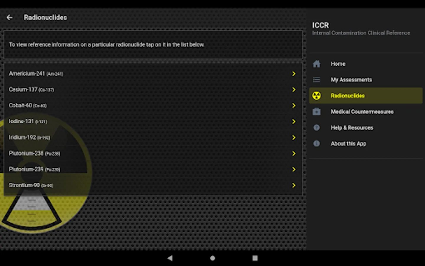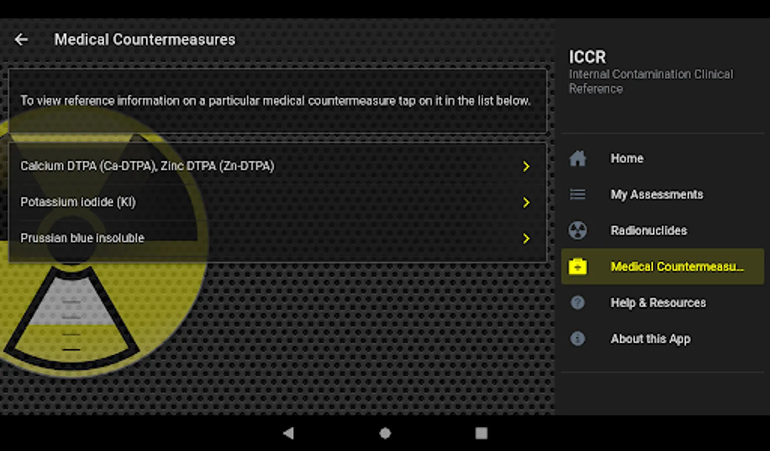 - Reference information on a particular radionuclide or a medical countermeasure
