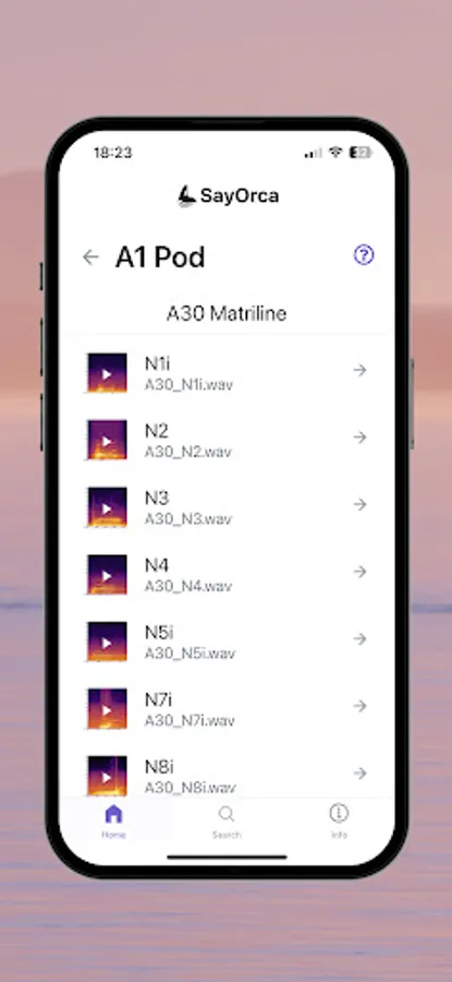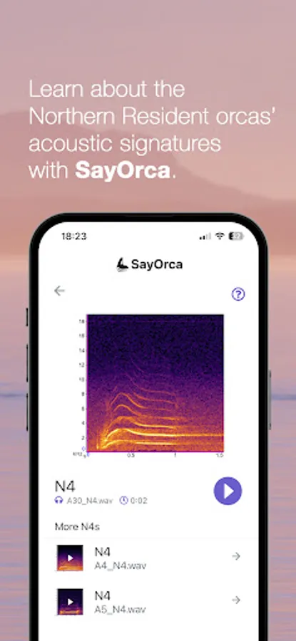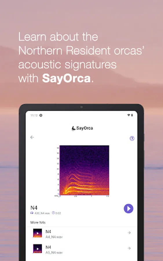 In this app, you'll learn how to classify different orca families - called 'matrilines' based entirely on their sound. Each matriline has a repertoire of around 10-15 discreet calls which forms their acoustic signature, and with enough practice you'll be able to recognize different orcas just by listening!