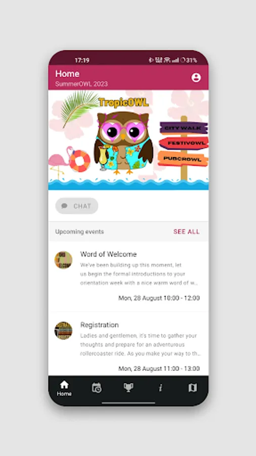 This is the official OWL app. It gives you the possibility to access the programme, find important – student – information and chat with your group and fellow OWL participants wherever you go. With the OWL app, you have all of Leiden in your pocket.