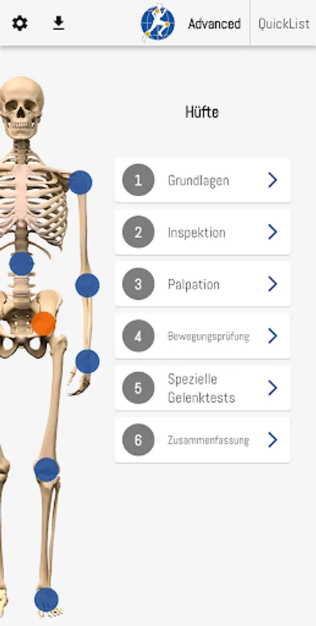 OrthoExamine integrates the teaching of these basics and the correct execution of the important examination techniques of the different body regions. The well thought-out navigation of the APP makes it possible to quickly and specifically call up specific joints or view a structured, comprehensive examination of the body region.