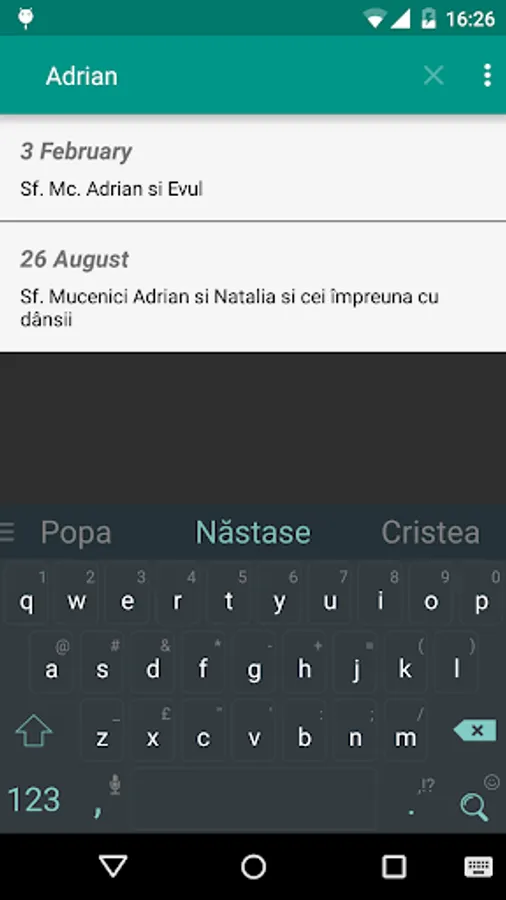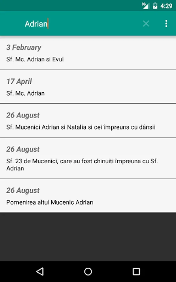 Contine functie de cautare a sarbatorilor/sfintilor si de adaugare a unui reminder in calendar - pentru onomastici.