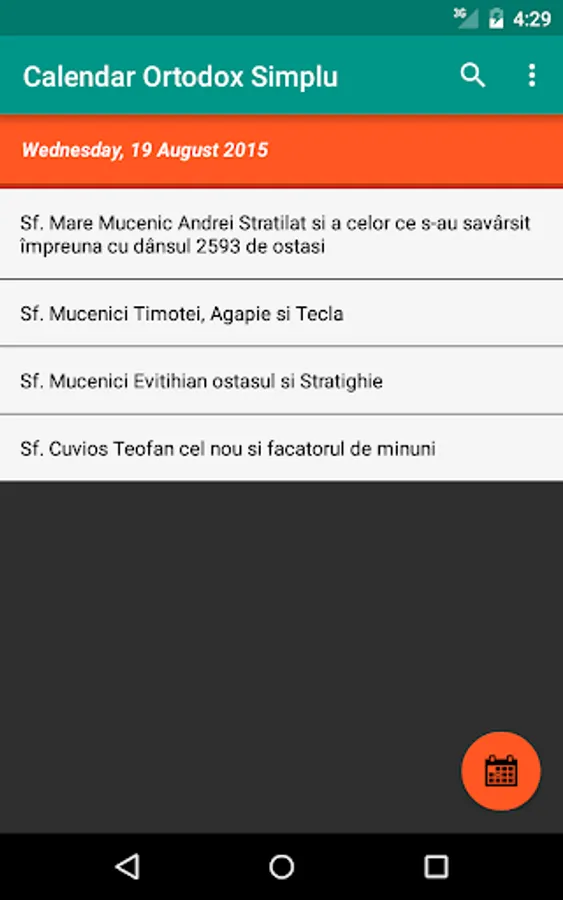 Widget that displays the saints of the day, according to the calendar of the Romanian Orthodox Church.