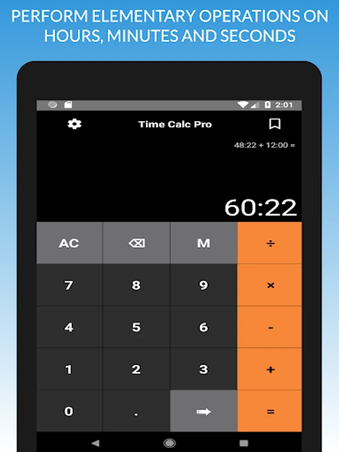 Time Calc Pro: a beautiful simple and accurate time calculator that allows you to perform elementary operations on units of time like hours, minutes and seconds.