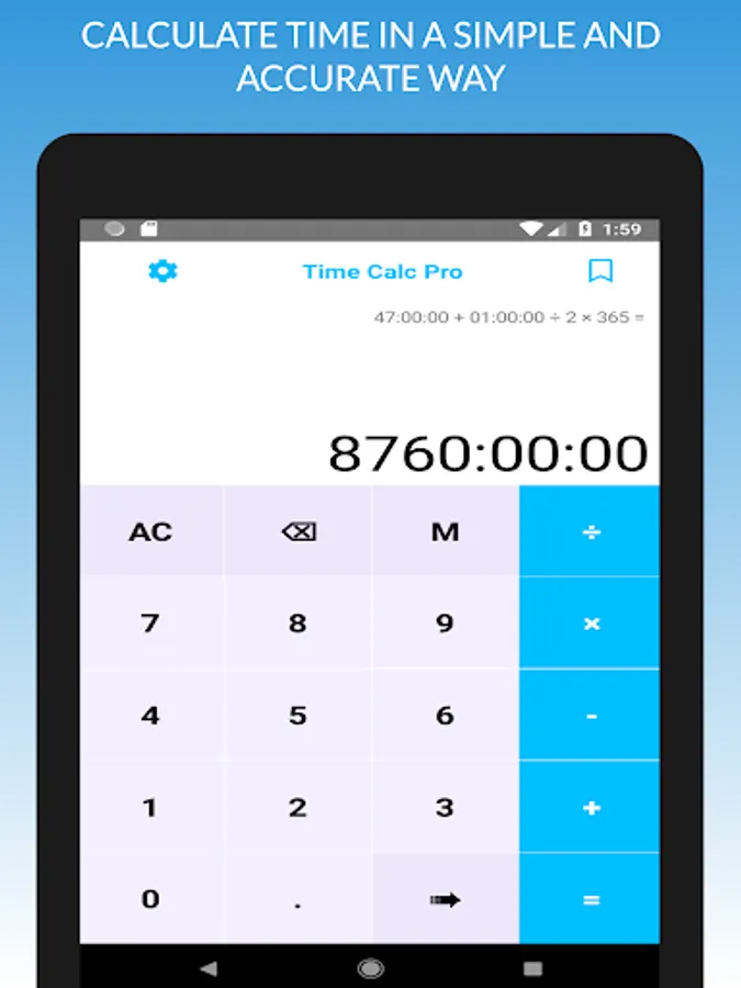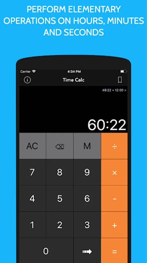 Time Calc: a beautiful simple and accurate time calculator that allows you to perform elementary operations on units of time like hours, minutes and seconds.
