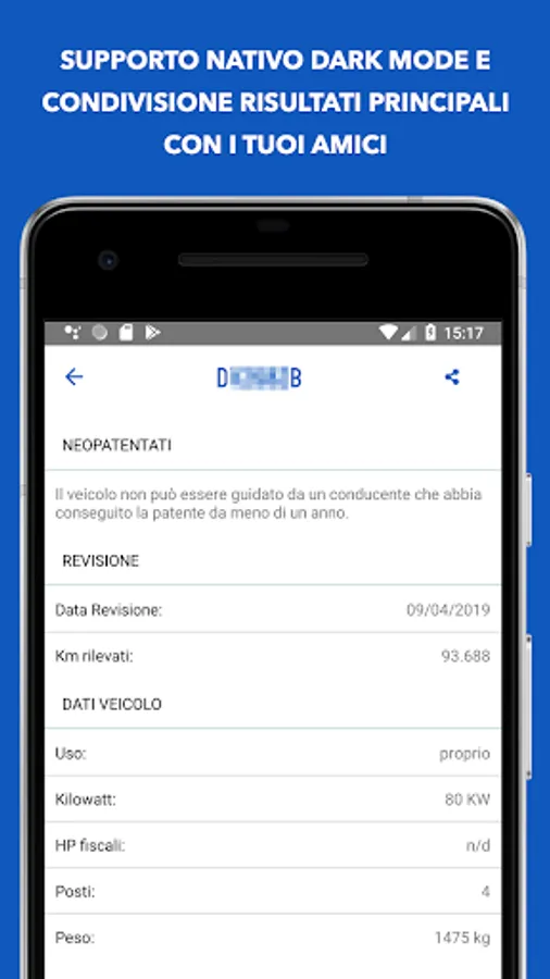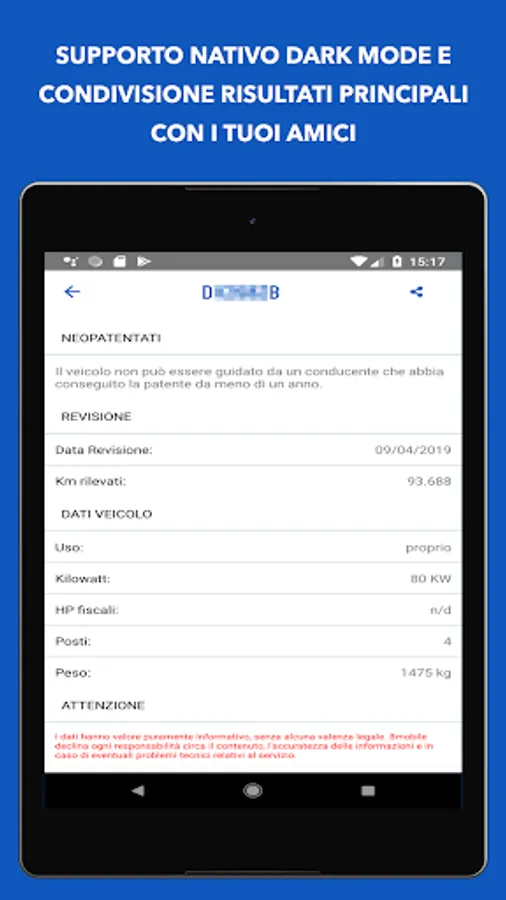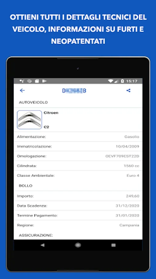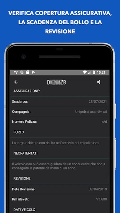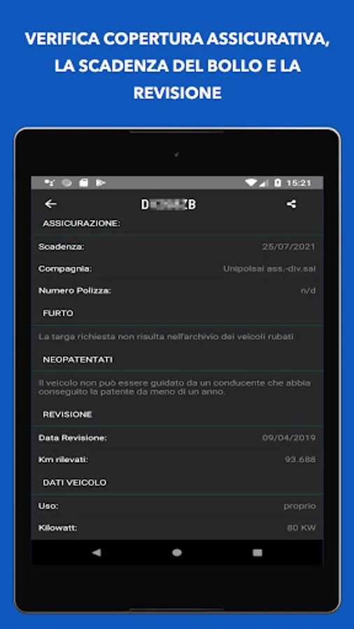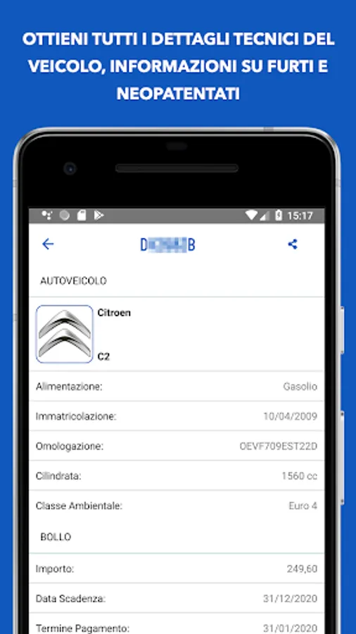 • Get all technical details of the italian vehicles (brand, model, power, registration and other useful information).