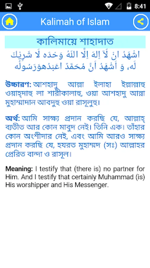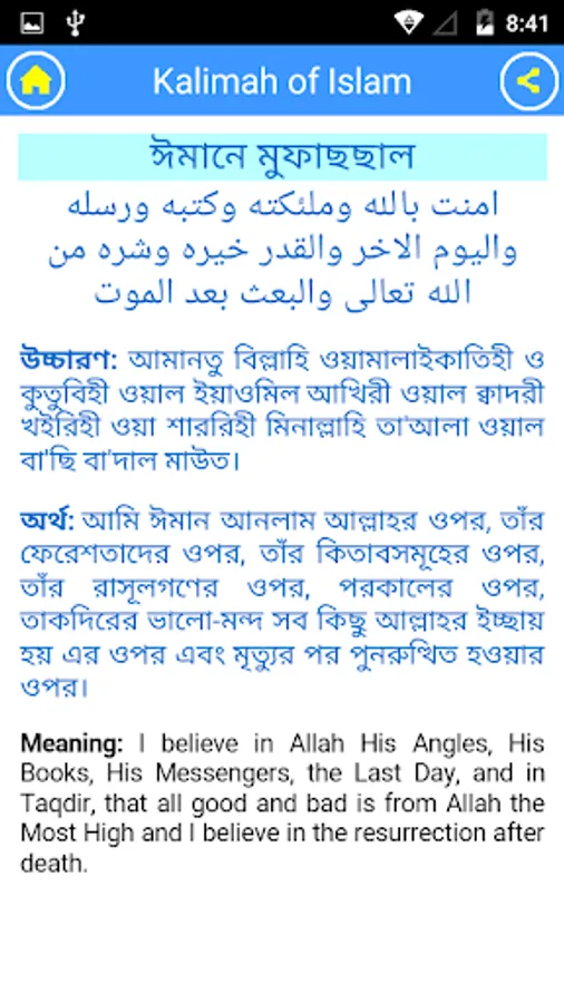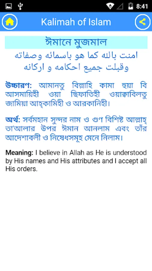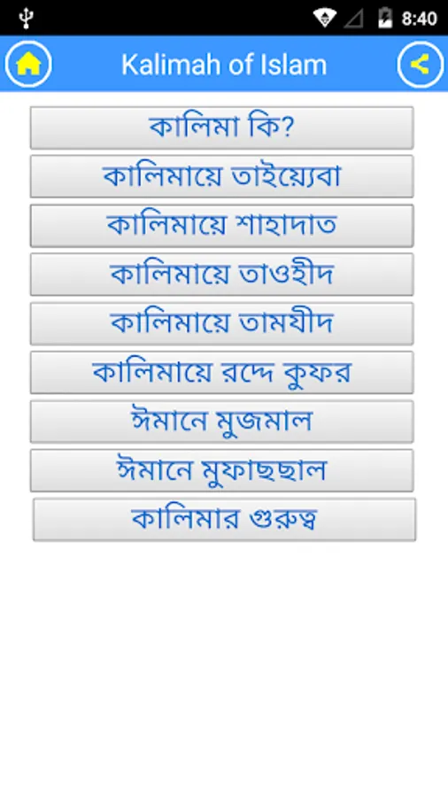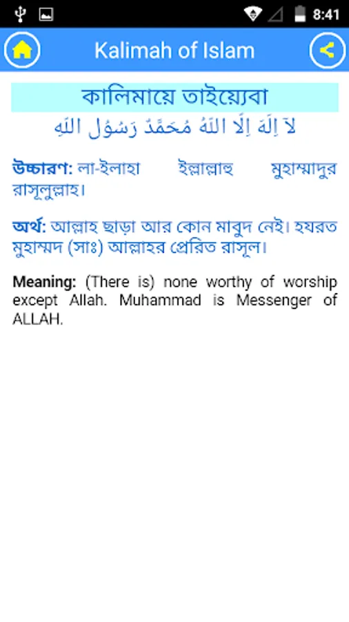 Kalimah means words. The very basic beliefs that someone must understand and follow to be a Muslim. The fine Kalimah names are: