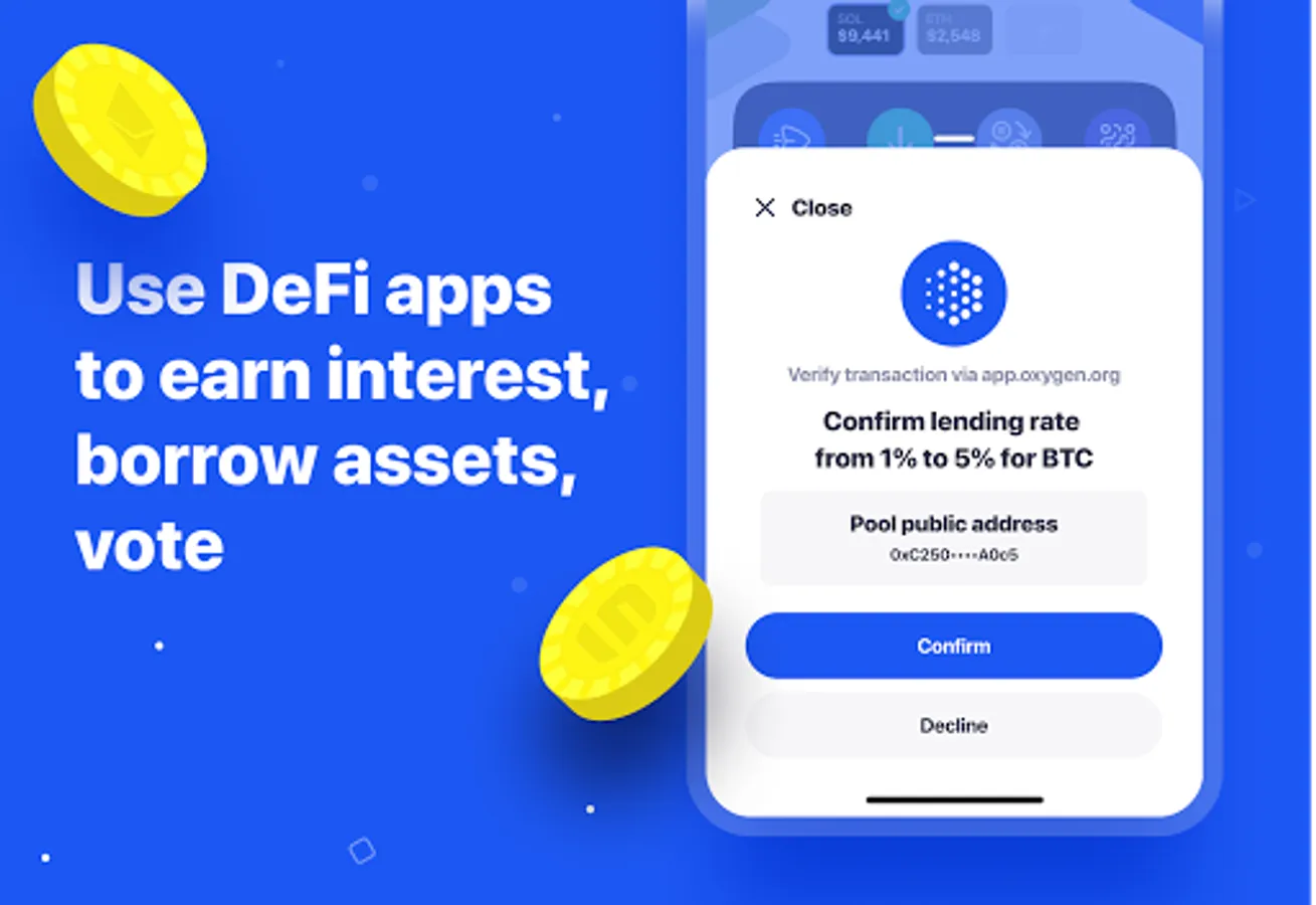 Oxygen Wallet is a non-custodial wallet for DeFi natives. It enables them to store Solana assets and seamlessly operate Oxygen DeFi Prime Brokerage protocol.