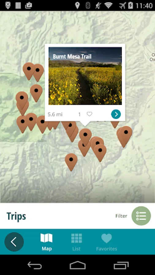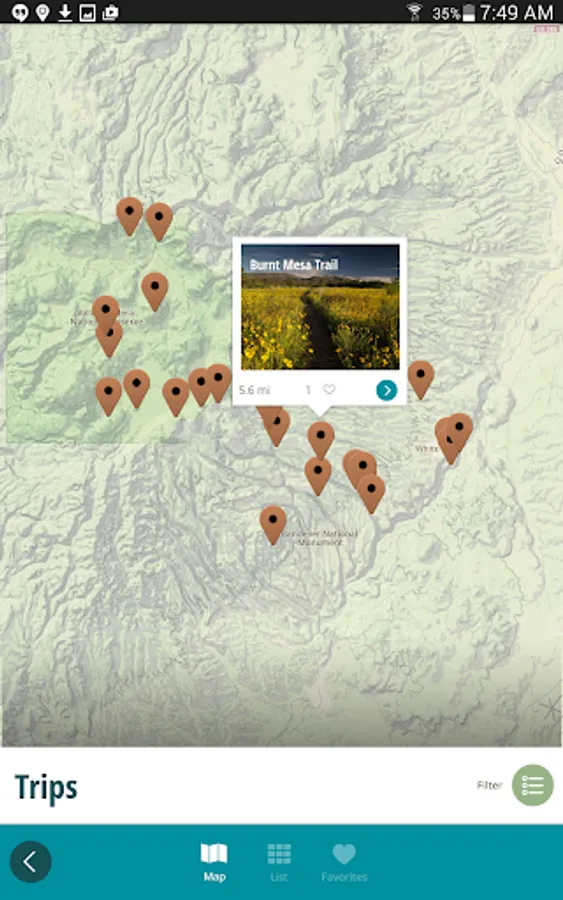 • Search for trips based on length, recommended skill level, distance from you, special features, and more.
