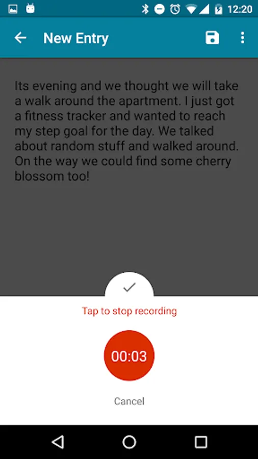 **THIS APP IS STRICTLY OFFLINE AND THERE IS NO ONLINE BACKUP OF THE ENTRIES. THERE IS A BACKUP/RESTORE FUNCTIONALITY WHICH WILL ALLOW THE USER TO BACKUP THE DATA AND THEN USE THE EXPORTED FILE TO IMPORT THE JOURNAL ENTRIES INTO ANOTHER DEVICE. **