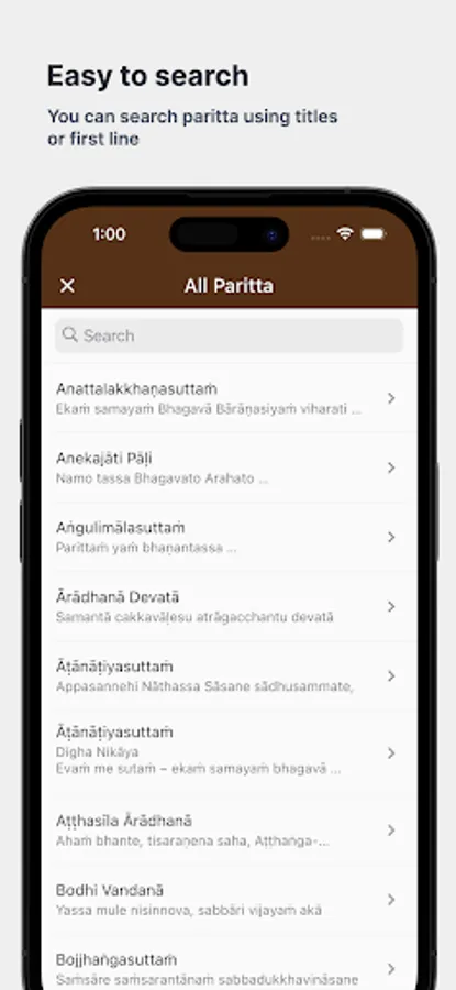 Paritta chanting app used in Pa-Auk Tawya Meditation Centre.