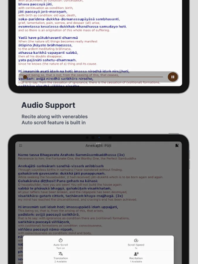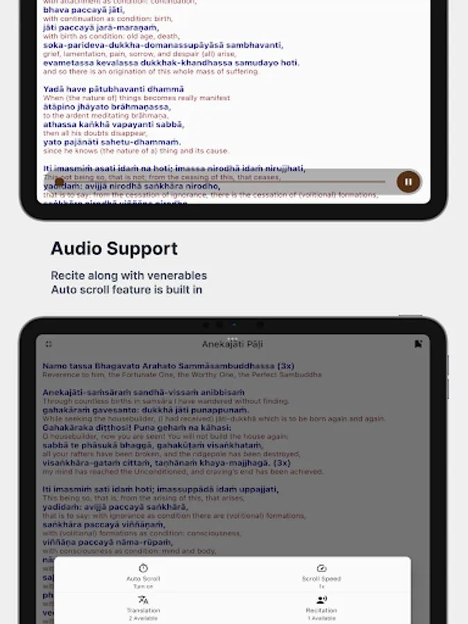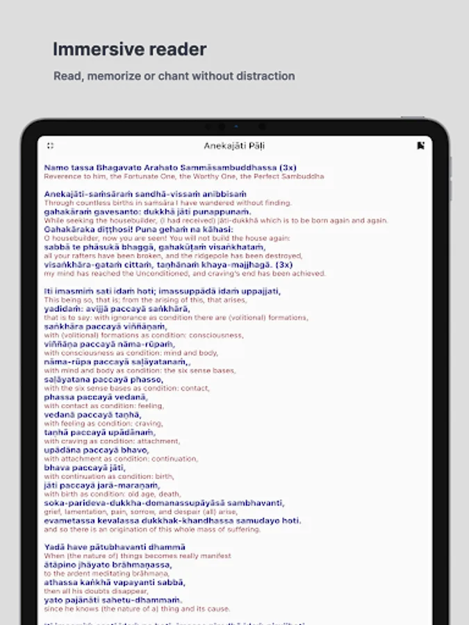 You can use this app to read, memorize, learn, or chant along with Venerable.