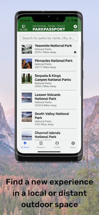 Created by the National Park Trust, the ParkPassport App is your guide to creating memorable park experiences in local, state, and national public lands and waters! Utilize our robust database and park finder tool to access and learn about over one-thousand park sites across the country. Filter for parks based on specific activities, cultural significance, or historical periods you’re interested in, and collect park-specific badges in your virtual park passport to record your visits.