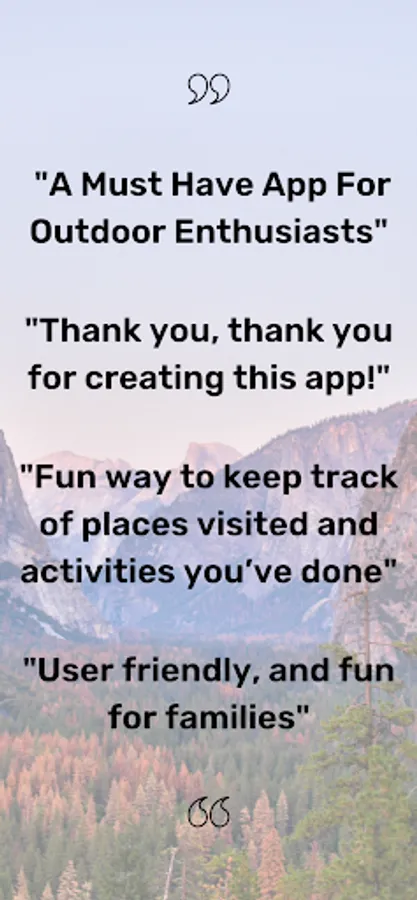 - Offline Functionality allows users to track their park visits and activities and access park information without the need to be connected to wifi or cell service