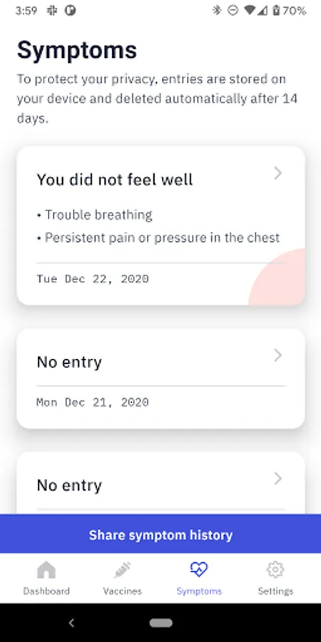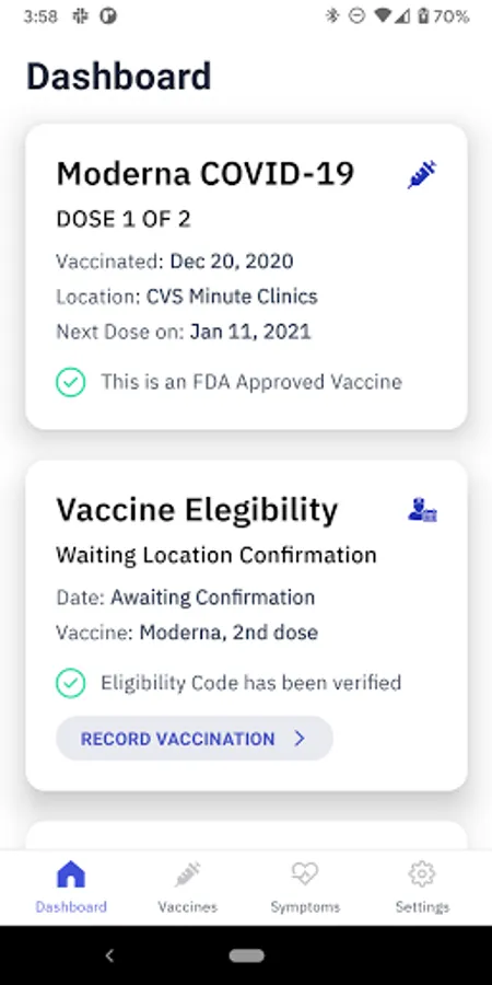 With PathCheck Boost, users can control their vaccination schedule without ever inserting personally identifiable information into the app. Features like loading and displaying eligibility codes for vaccination clinics nearby as well as the vaccine certificates themselves, together with daily symptom tracking, enable users to take full control over their health status without giving their information away.