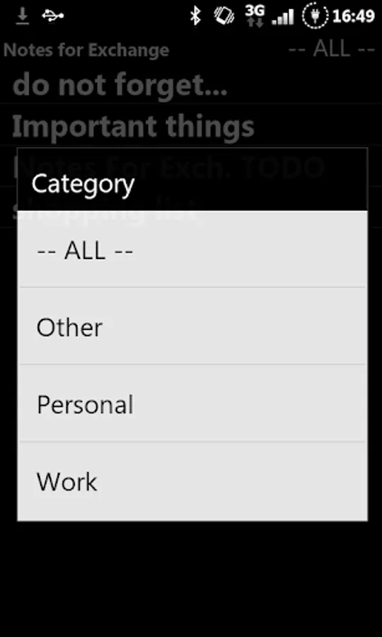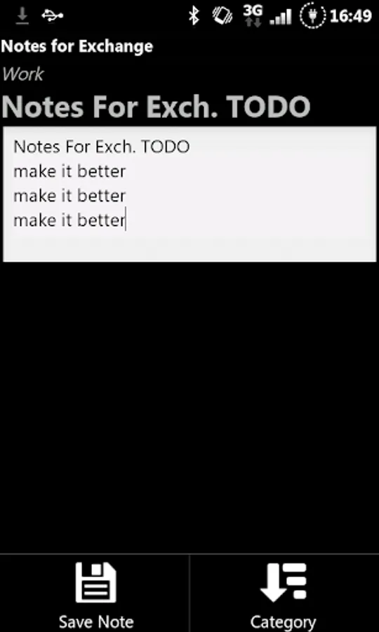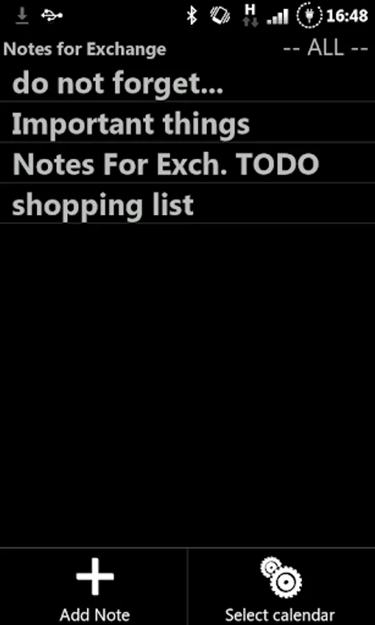 * Outlook Add-in (Can be downloaded at application website //sites.google.com/site/notesforexchange/), will synchronize your notes with calendar appointments. It creates items at end of February 2036, so it will not collide with your standard events. Using standard Exchange synchronization, these are synchronized with your android phone.