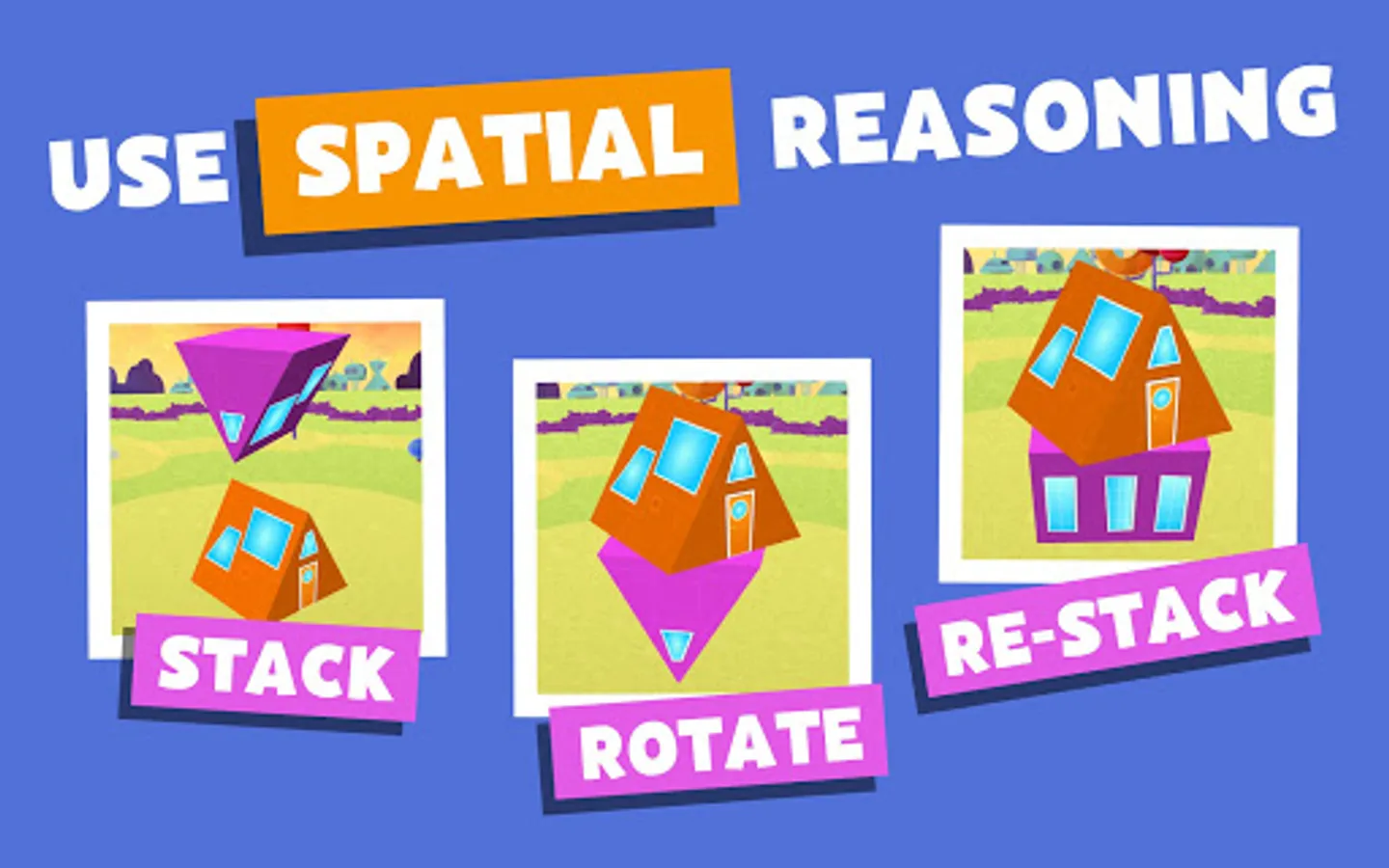 Bumbling bots Buzz and Delete accidentally zapped the houses in Botopolis totally flat. Help rebuild the town by turning 2D shapes into 3D structures.