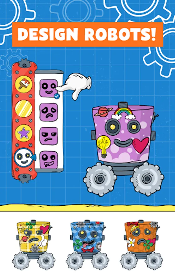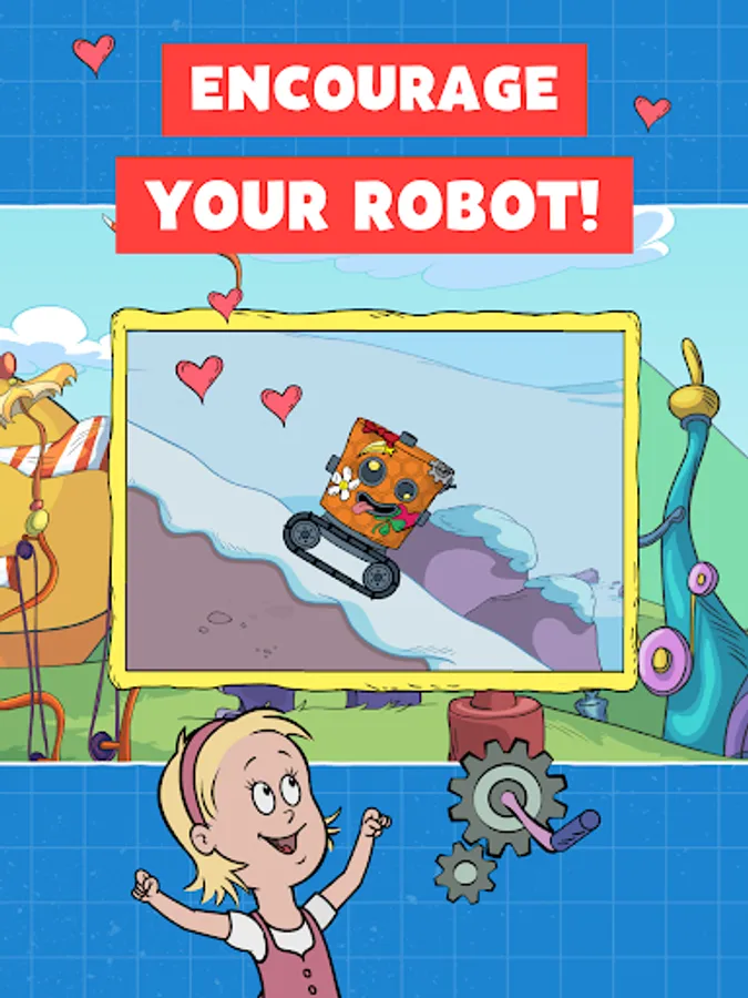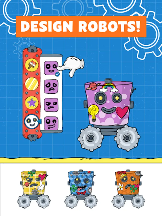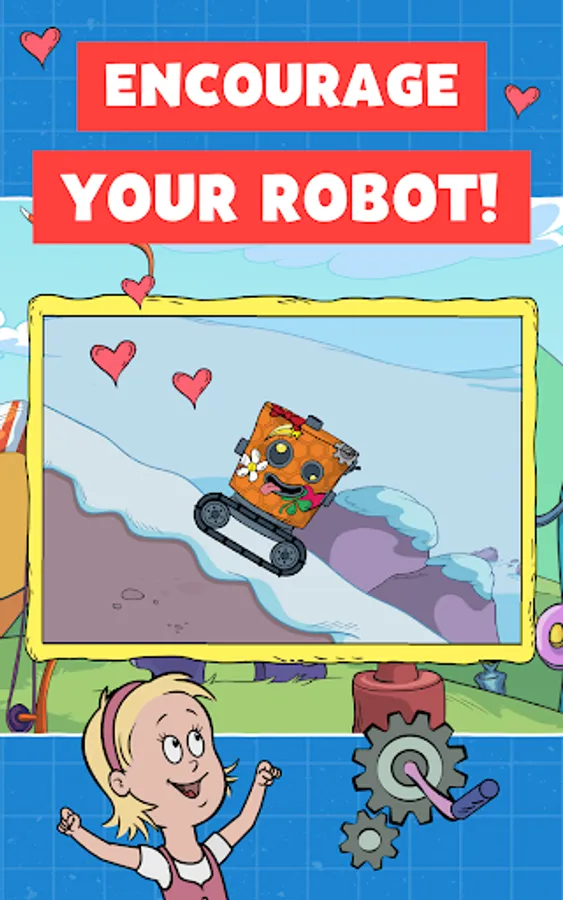 Nick designed a robot which your child can customize as her very own. Kids can use stickers and patterns they find as they play through each level. They can also pick their robot’s emotion - cheerful, silly, grumpy, or sad – and watch how their robot responds.
