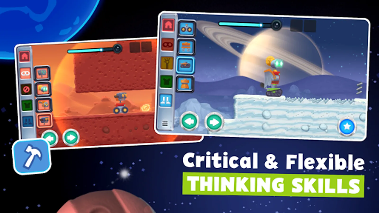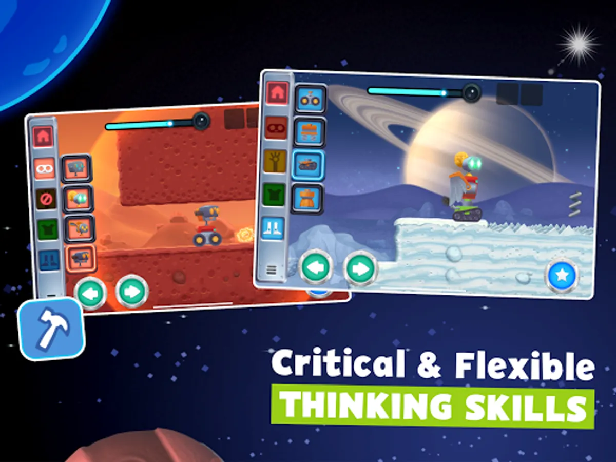 Each planet has a new challenge for your robot. Kids can build new parts and swap them around to find the best way to solve each level, learning critical thinking and problem-solving skills as they do.